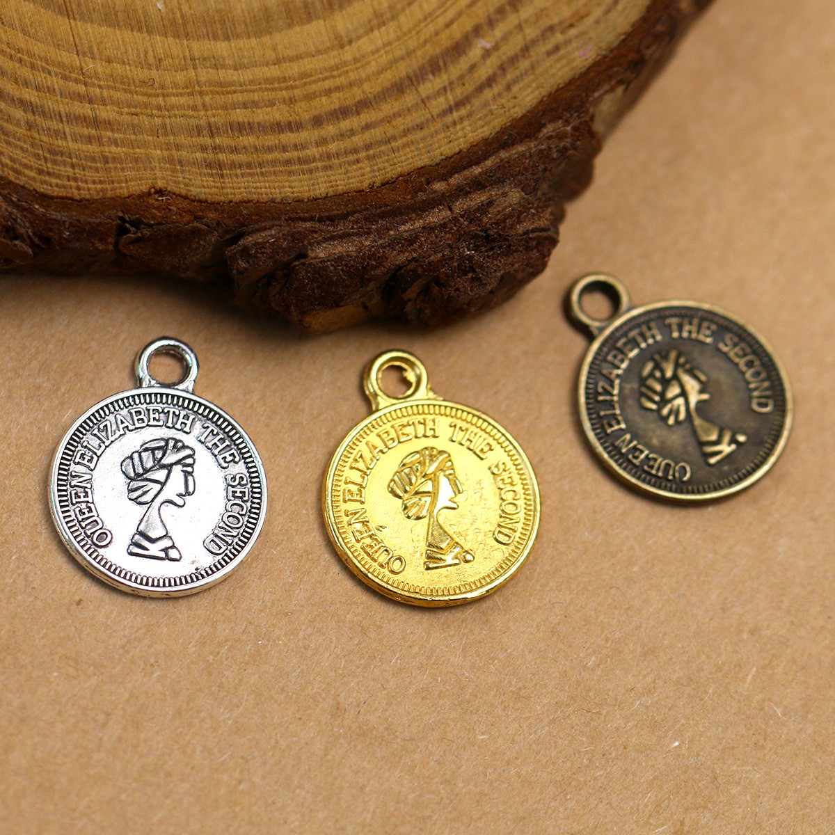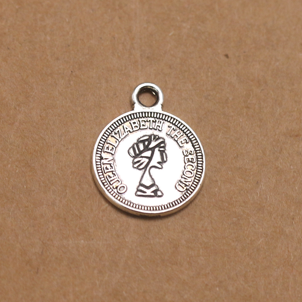 Vintage Alloy Round Retro Queen of England Beauty Head Bracelet Clothing Bag Pendant