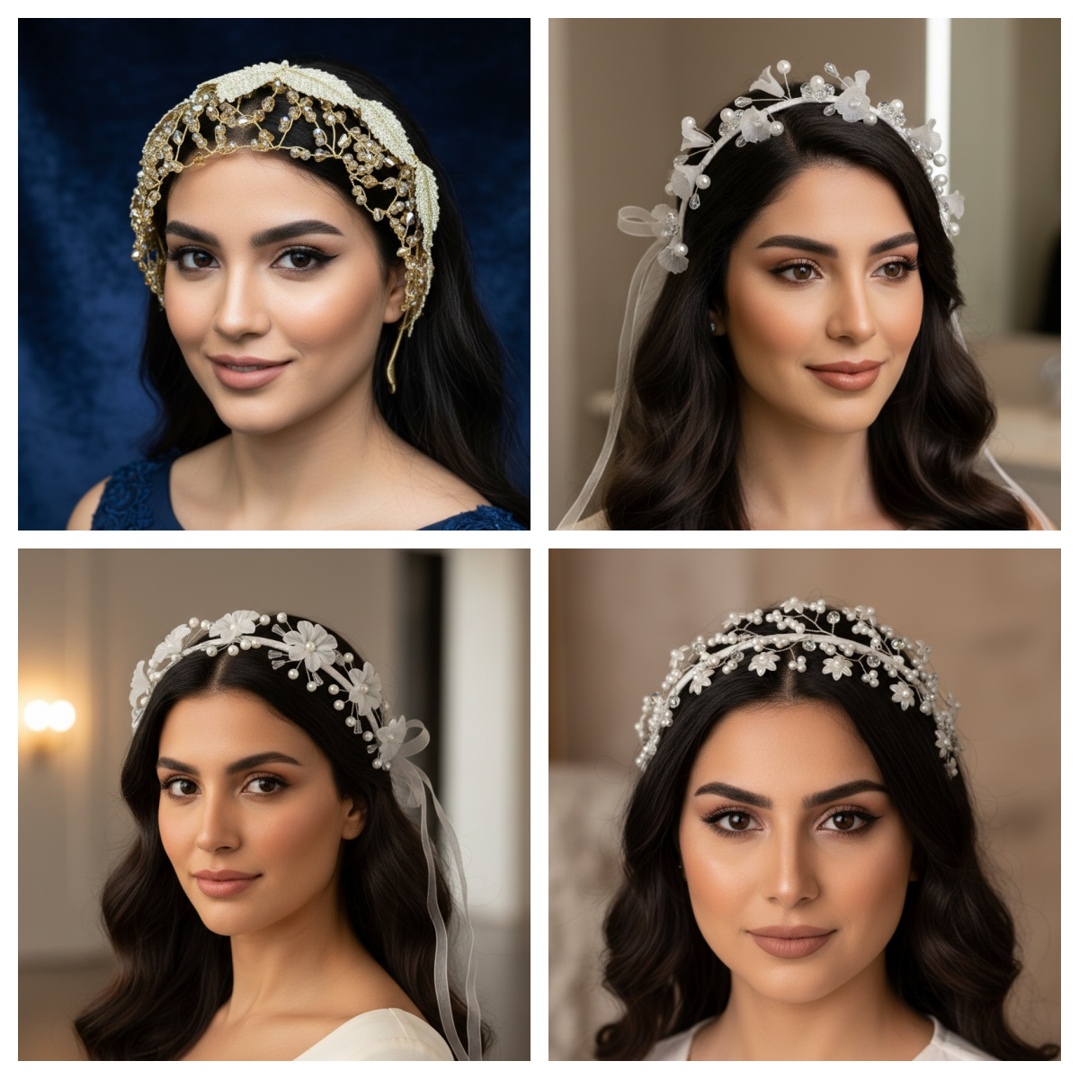 Foreign trade handmade rhinestone headband, bridal wedding dress hair accessory, double-row claw chain headband, crystal woven hair crown