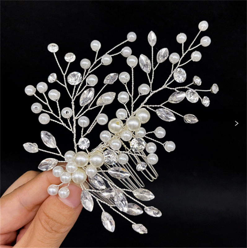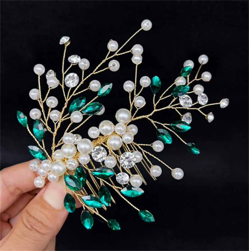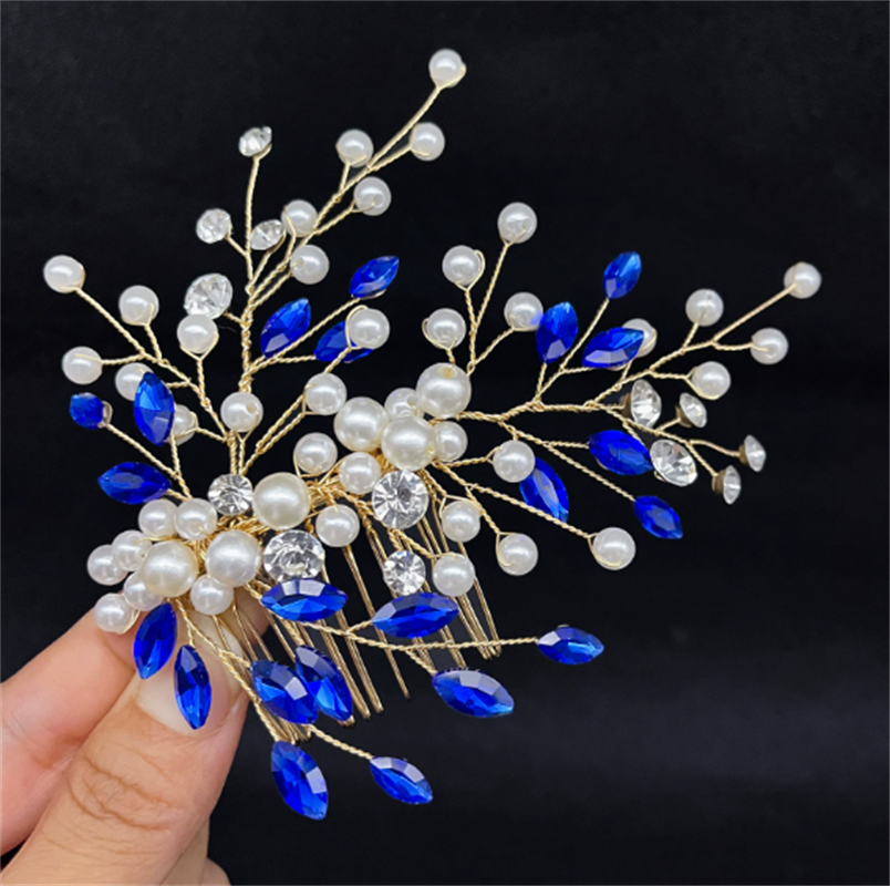 Foreign trade bride headwear blue rhinestone pearl hair comb elegant women's hairstyle accessories formal dress insert comb