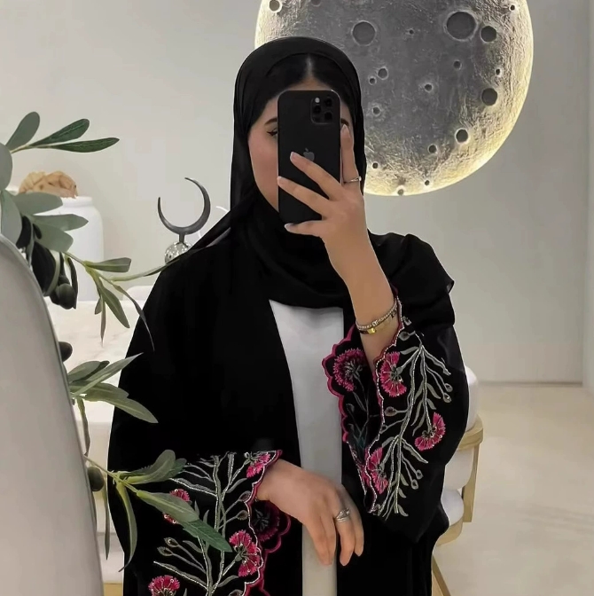 Dubai Arabic Embroidery Fashions Stylish Outer Wear Robe Abaya with Fashionable Accessory