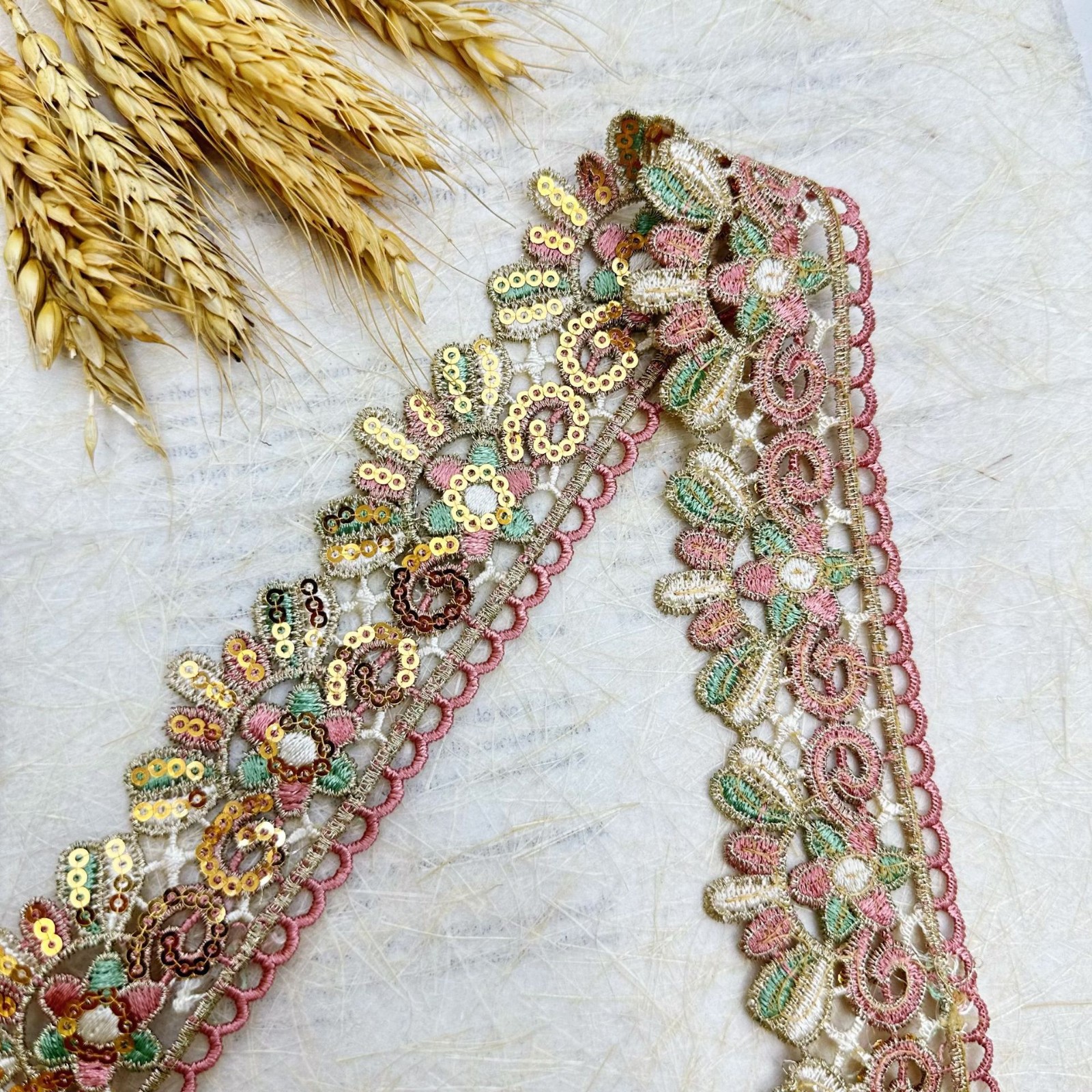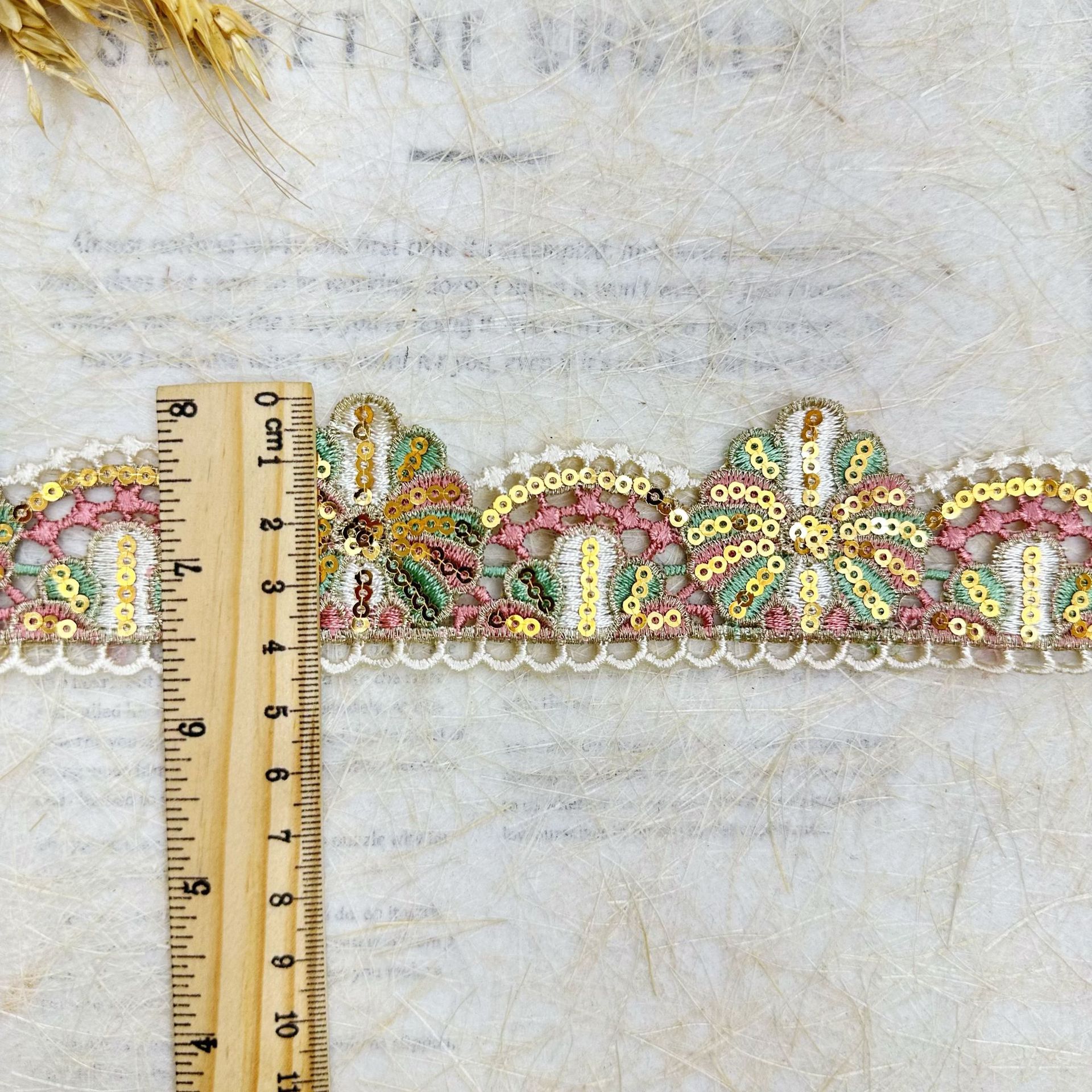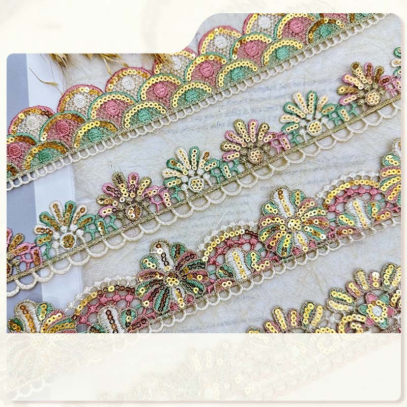 Multi Color Embroidery Lace, Gold Thread Sequins, Four-color Lace Beads, Ethnic Style Lace Accessories, Clothing Accessories