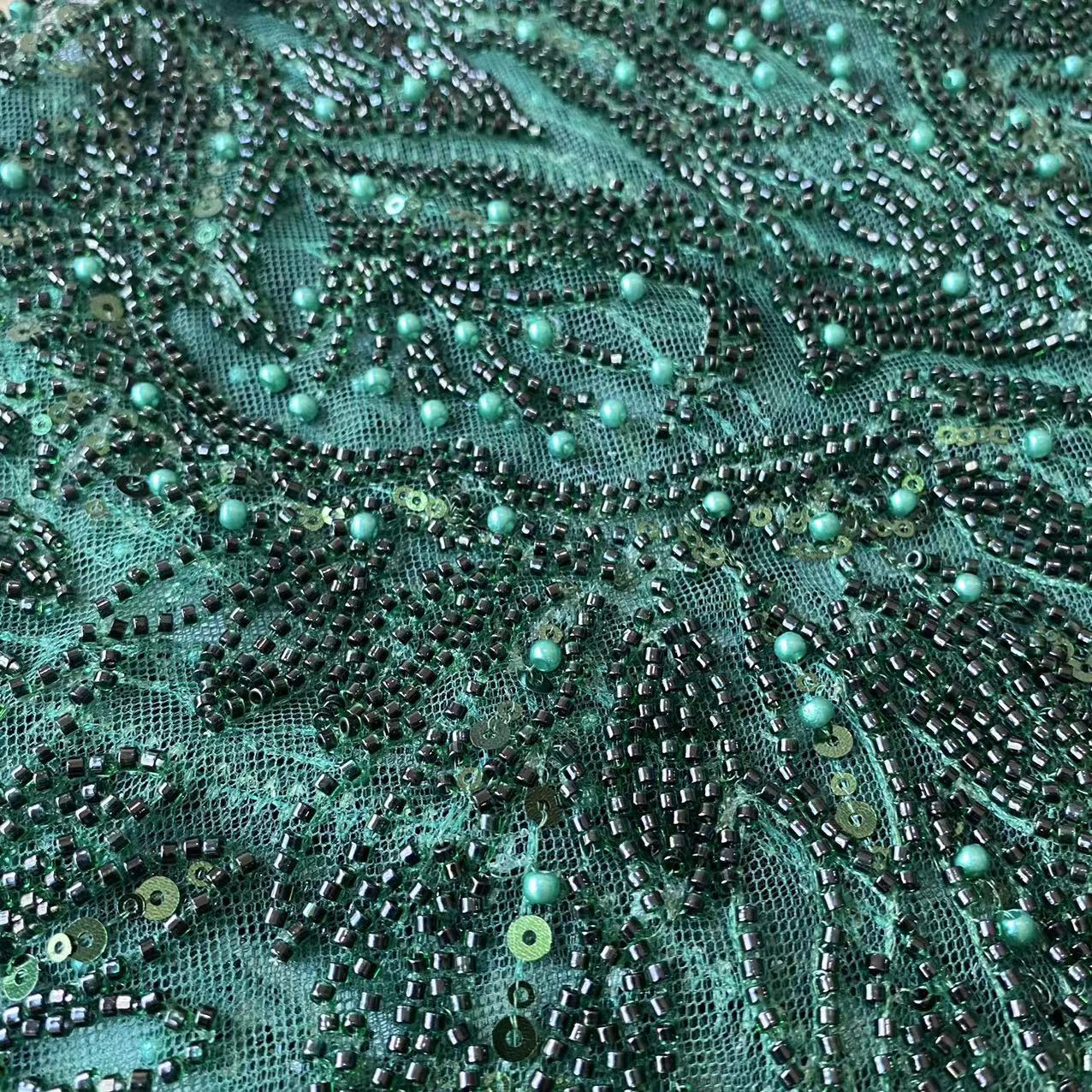 Luxury Fancy Eco-Friendly Spot Bead Tube Beads Sequins Mesh Lace Embroidery Wedding Dress Fabric for Bags & Shoes