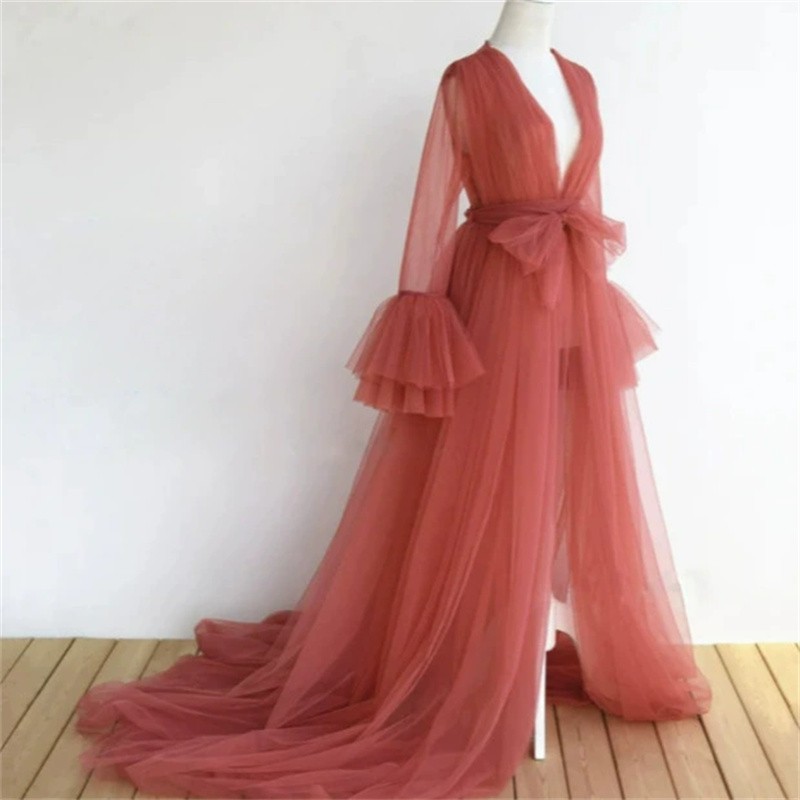 Ladies new fashion maternity mesh skirt orange dress studio photography clothing sweet solid color loose dress