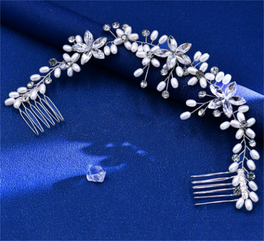 Wedding Bohemian Light Luxury Handmade Braided Hairbrush, Diamond Pearl Simple Headpiece