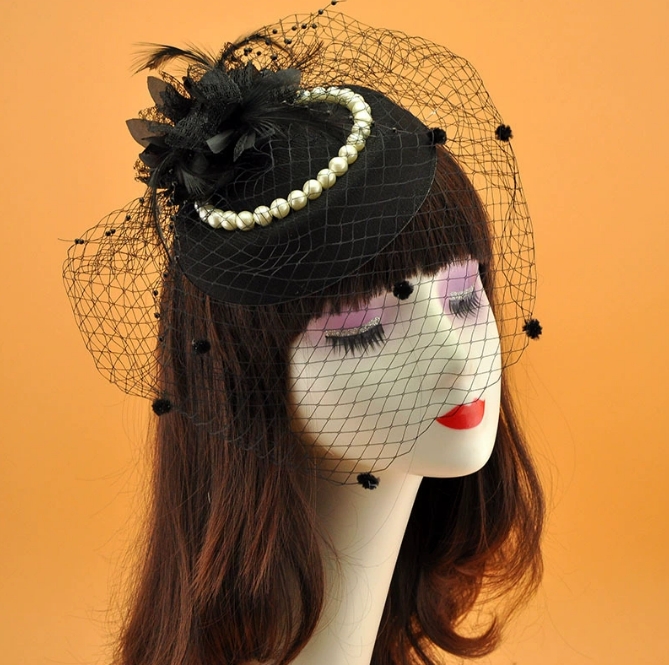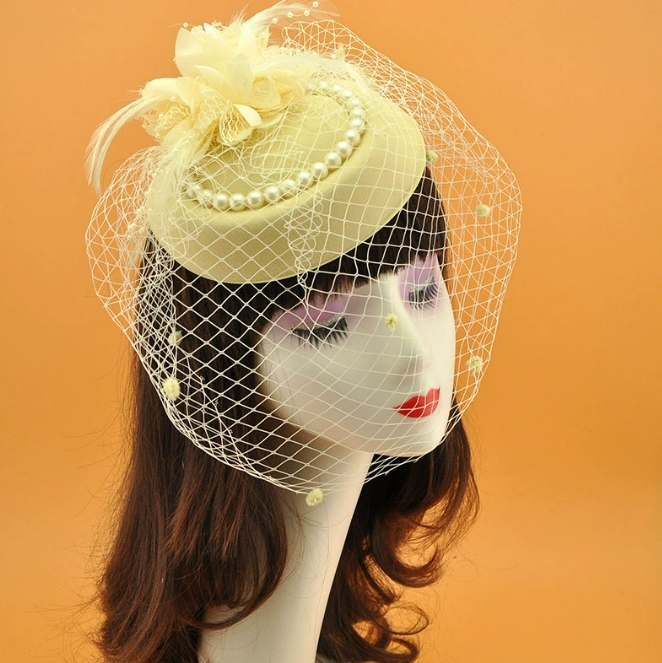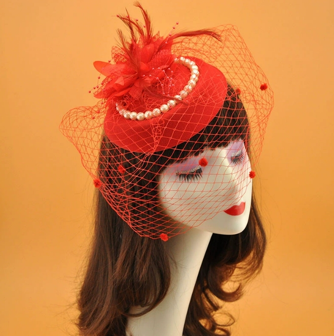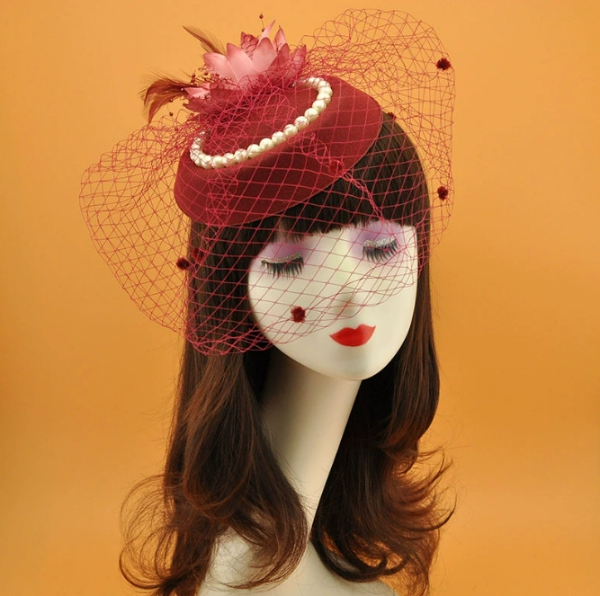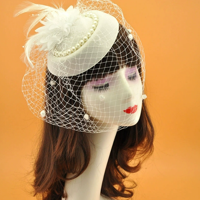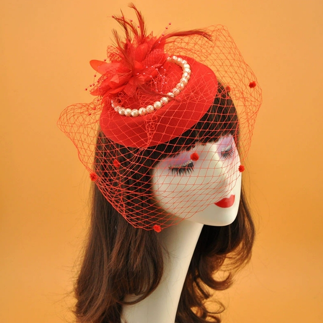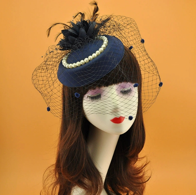 Small Hat Female Headdress Cheongsam Accessories Bridal Hat Veil Evening Dress Hair Accessories Retro Mesh Hat