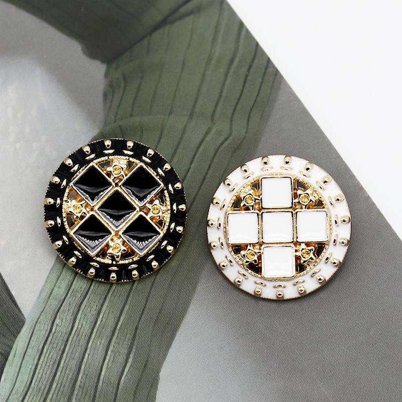 Small Fragrance Style Cross Hollow Metal Buttons for Women's Suits, Tweed Coats, Decorative Buttons for Overcoats and Sweaters, Round Buttons