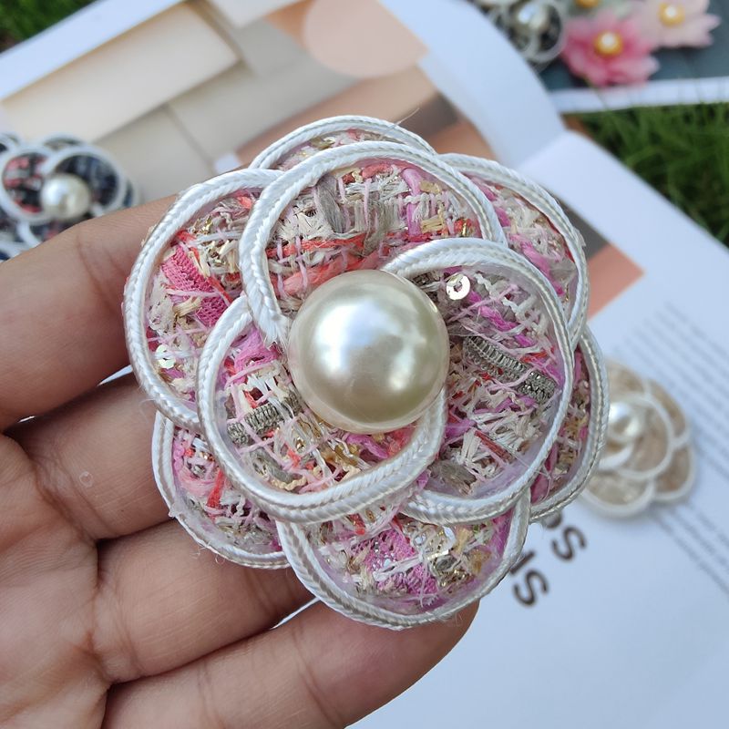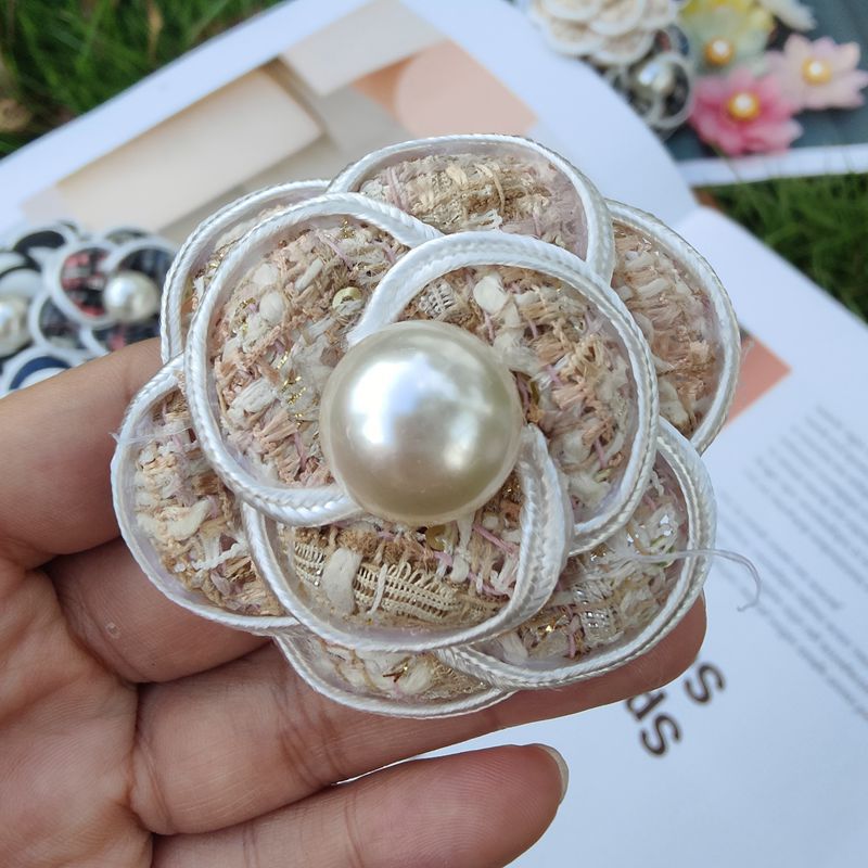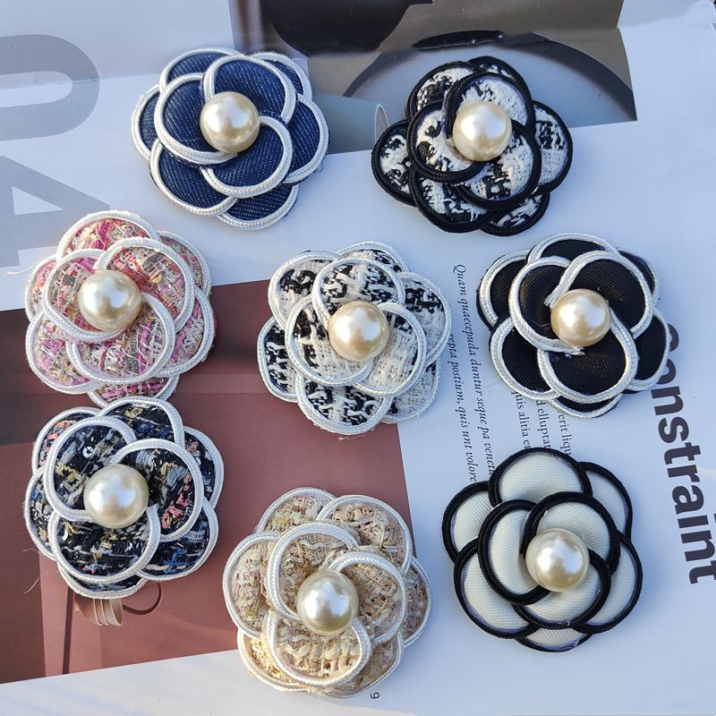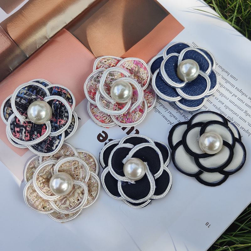 Camellia Handmade Flower Imitation Pearl Flower Brooch Suit Decoration DIY Hair Accessories