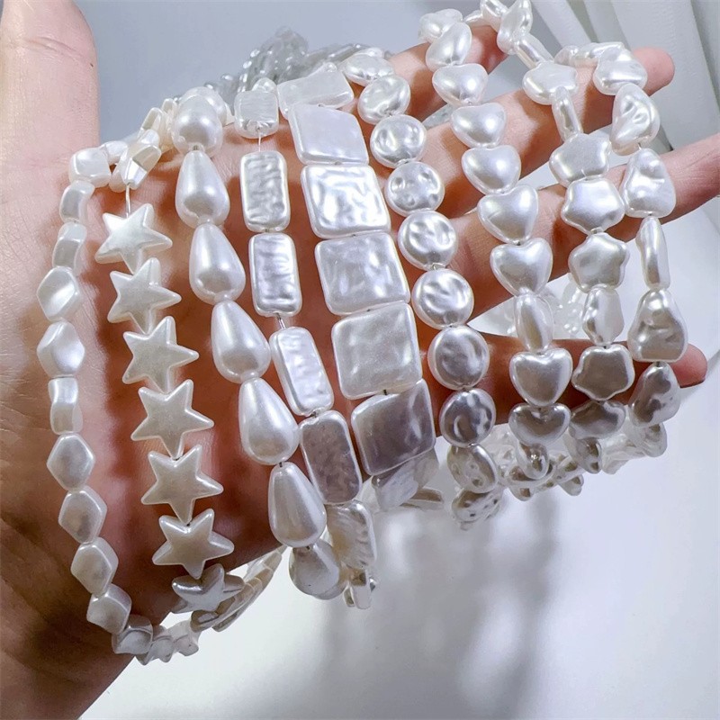 Baroque shaped pearl heart-shaped water droplet straight hole imitation pearl bead earrings bracelet necklace DIY handmade accessories