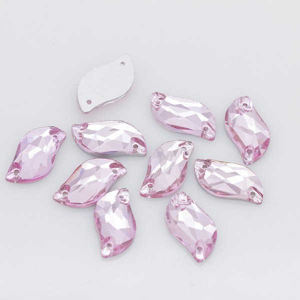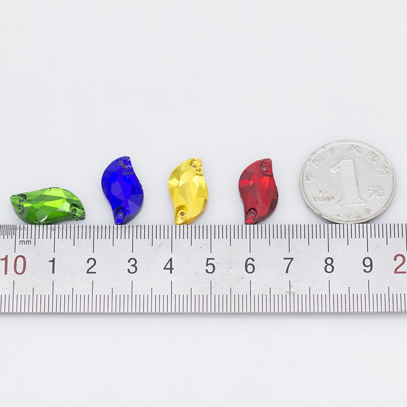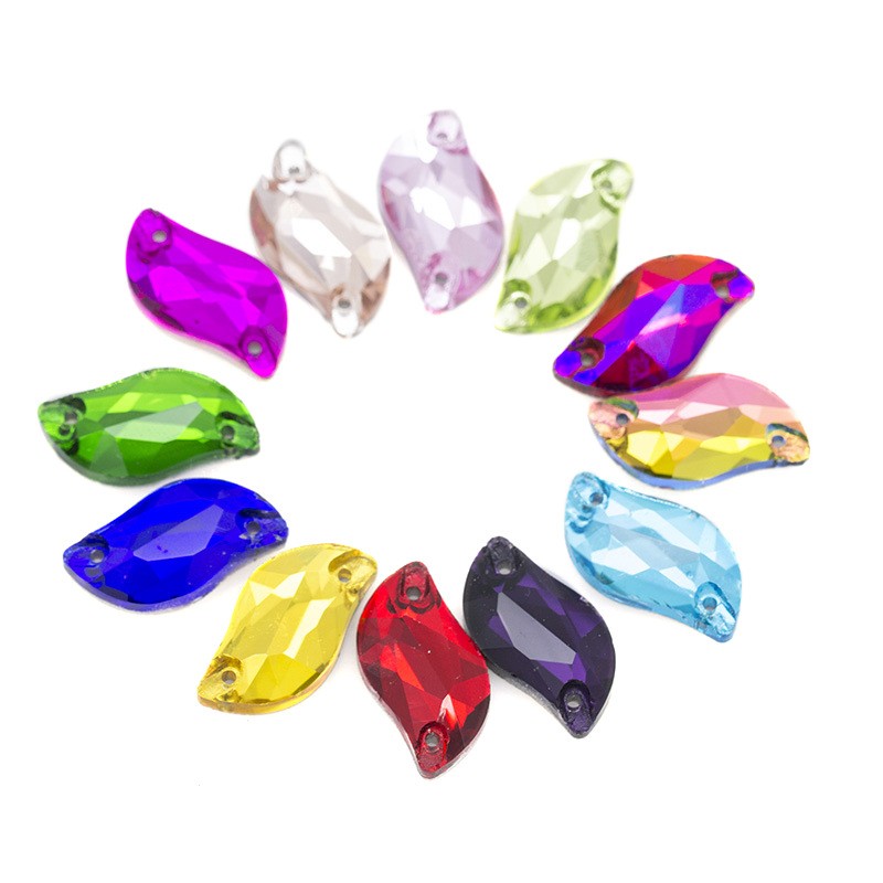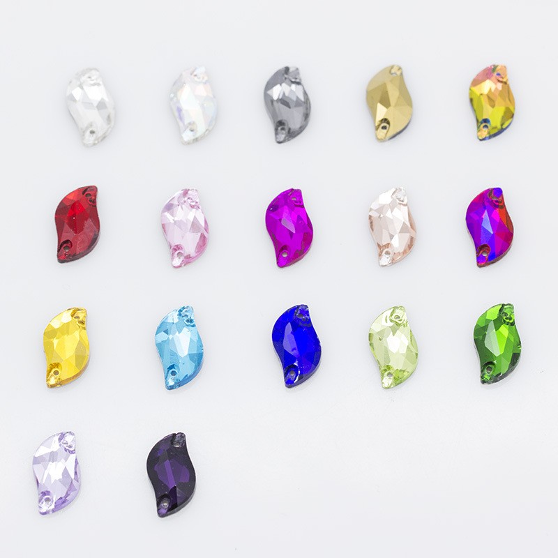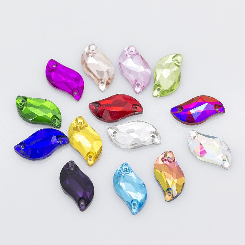 Beautiful fashion double hole flat bottom leaf shape glass rhinestone