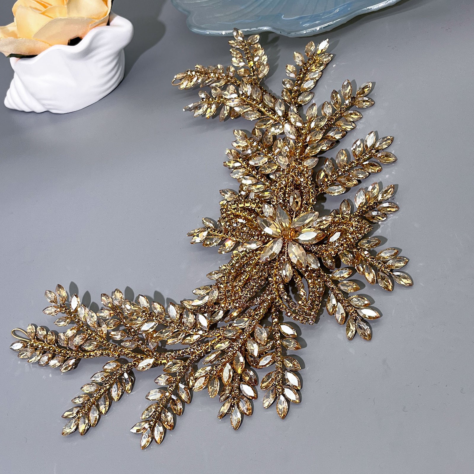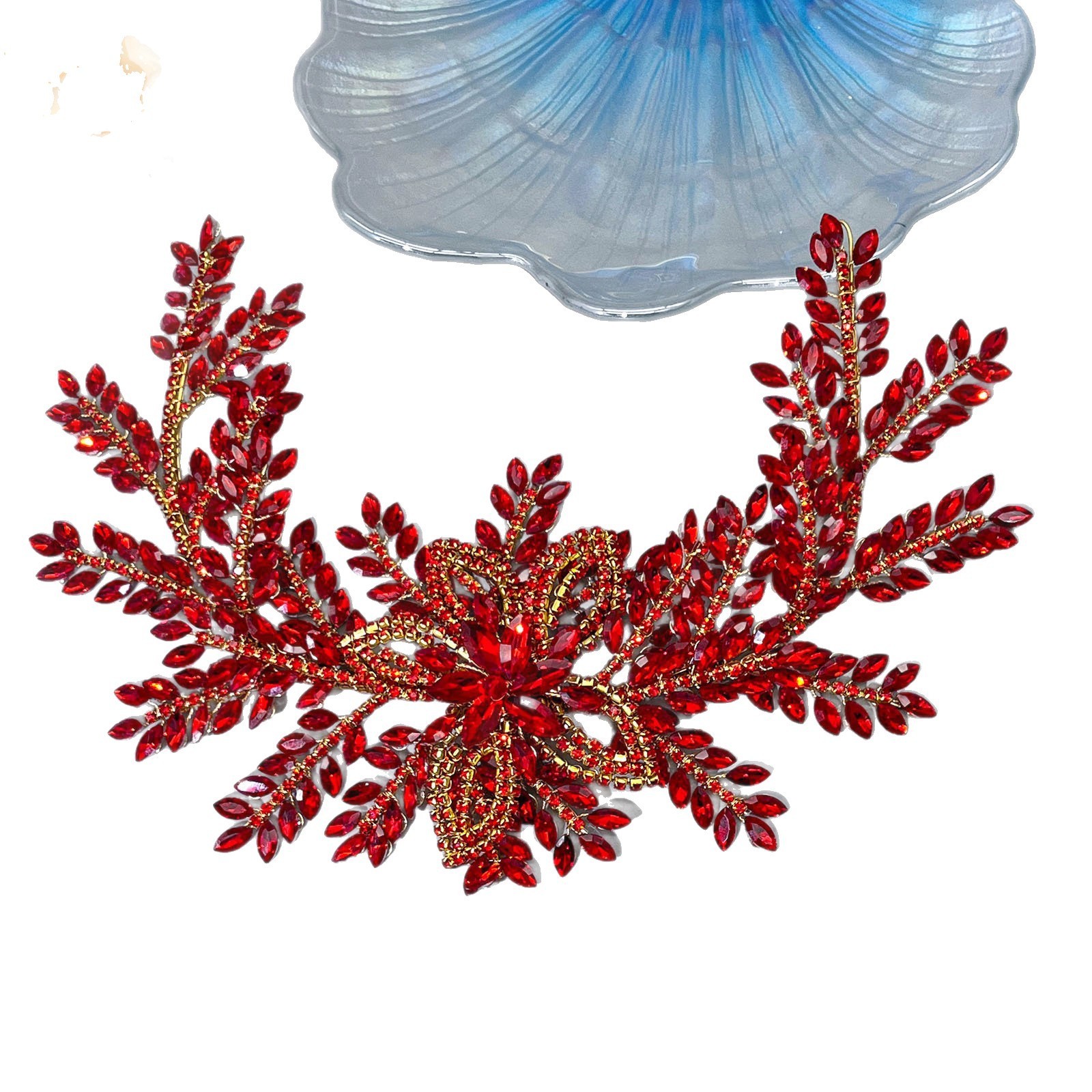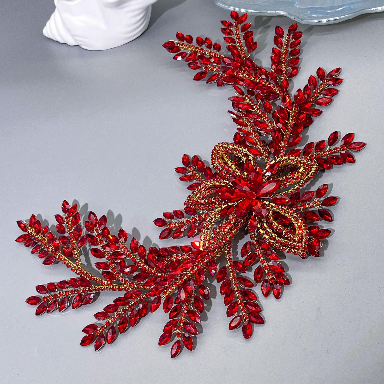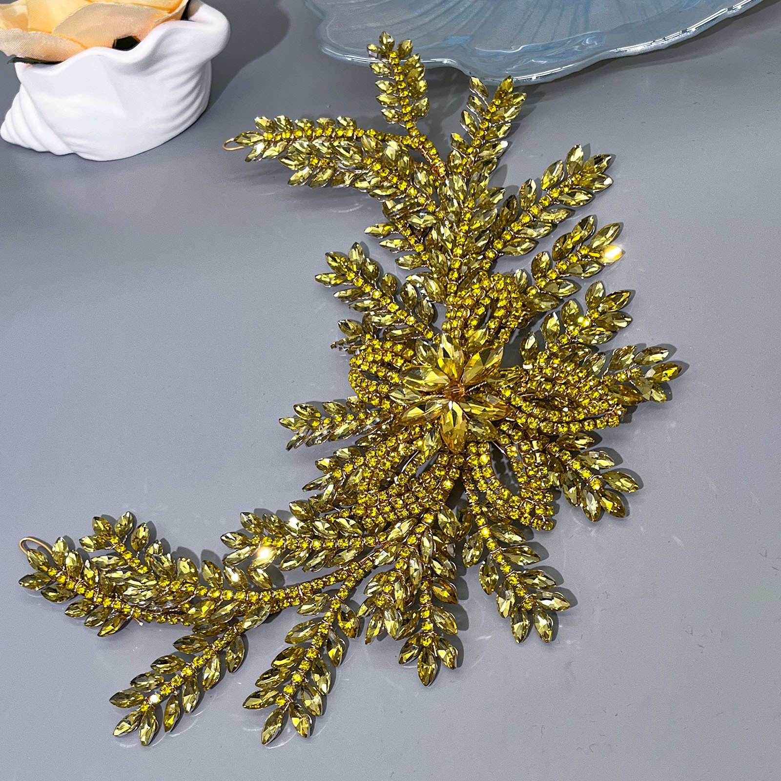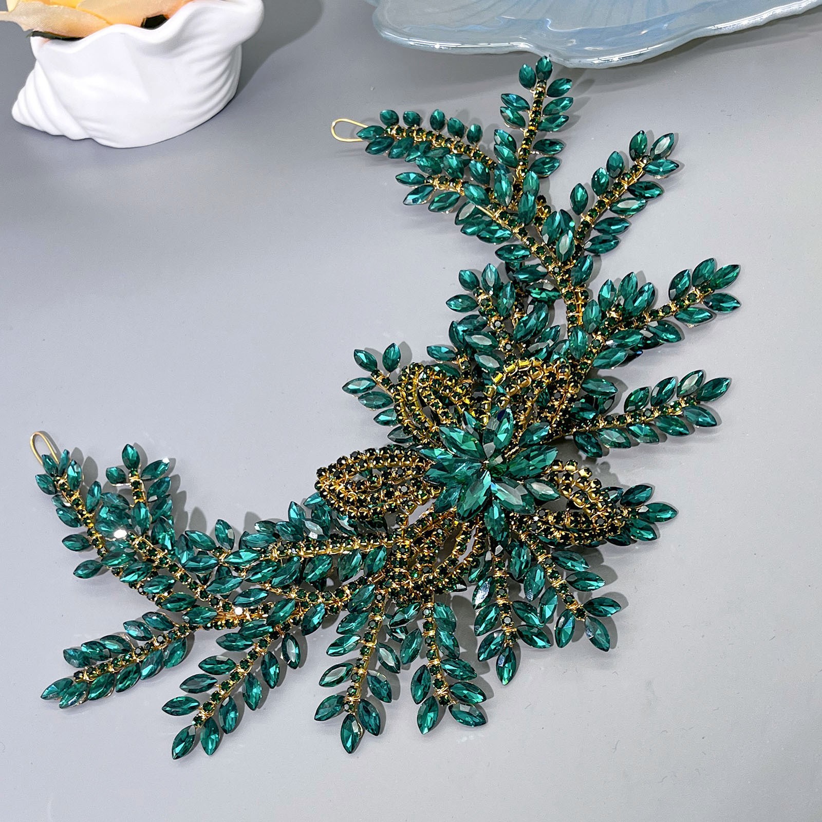Handmade Rhinestone Bridal Headband Heavy Diamond Leaf Flower Wedding Hair Accessories