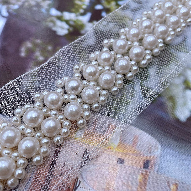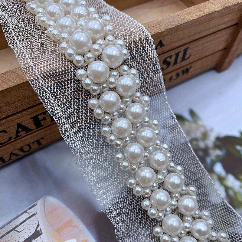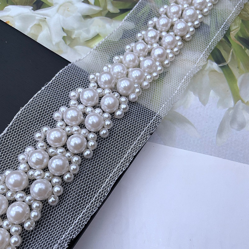 Hand-sewn Beaded Mesh Pearl Barcode Lace Clothing Accessories Clothing Accessories Hand-beaded