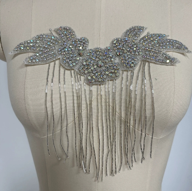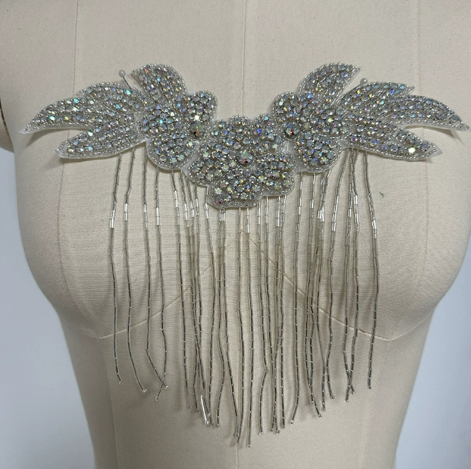 Hand-sewn Rhinestone with Tassel Adhesive Flower Patch Clothing Dress Dance Catwalk Accessories DIY