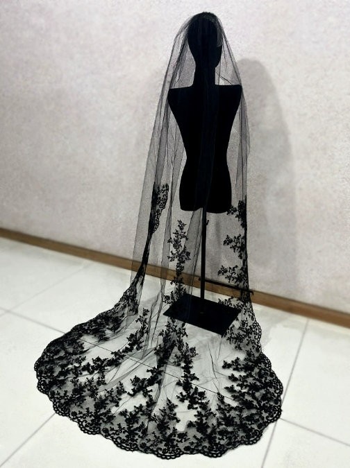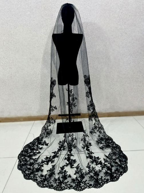 Bride Wedding Long Black Lace Veil Halloween COS Veil Wedding Photo Props Veil