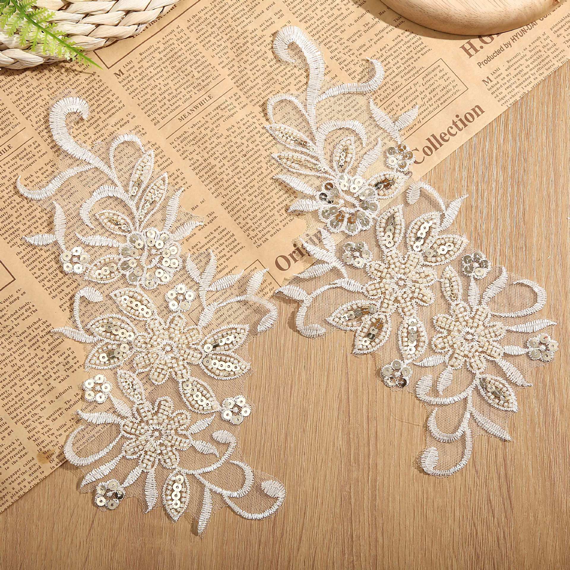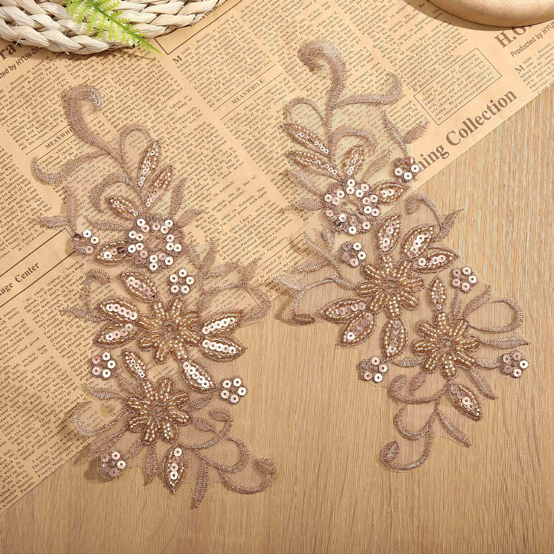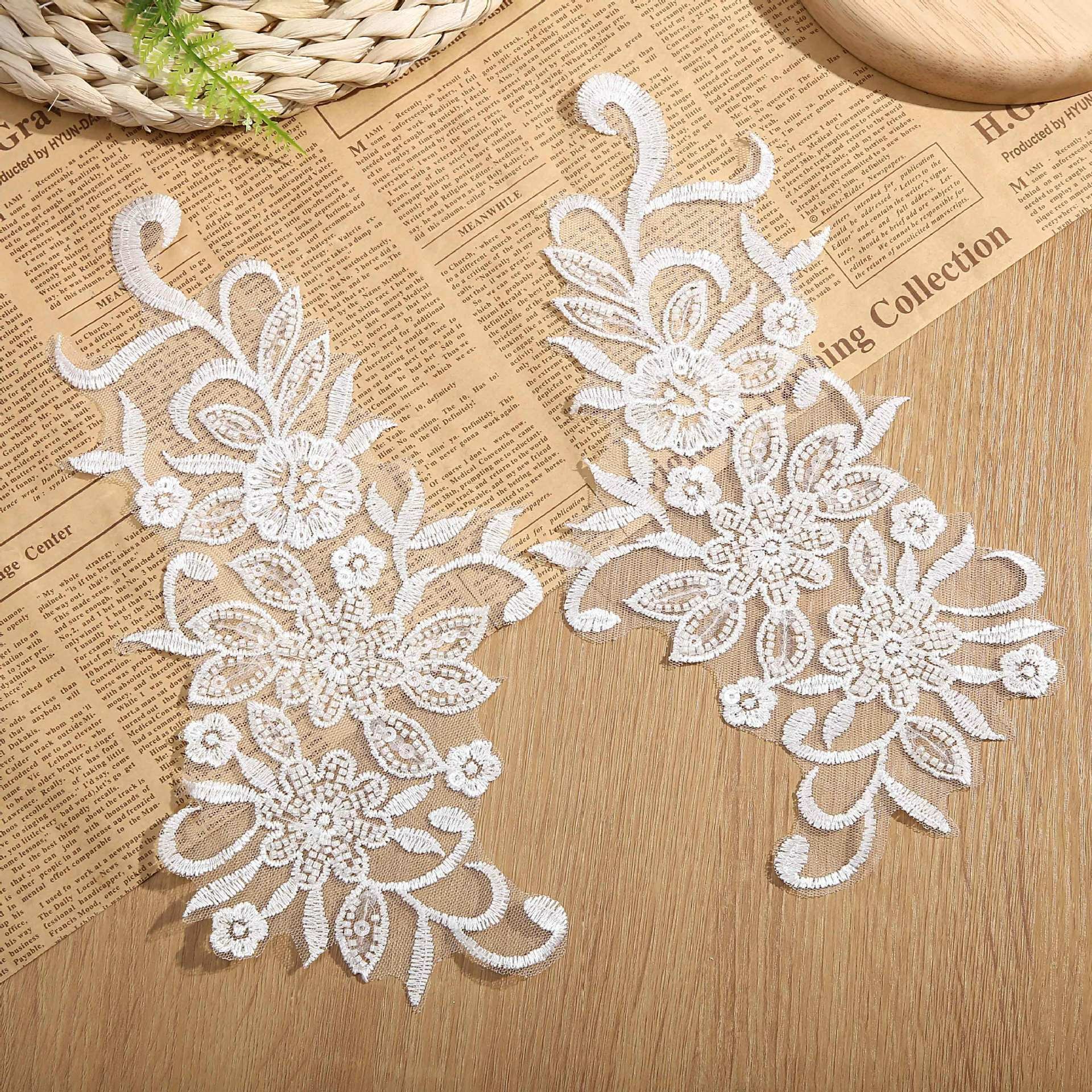 New Embroidery Flower Sequin Lace Wedding Dress DIY Children's Clothing Performance Clothing Accessories Lace Wholesale