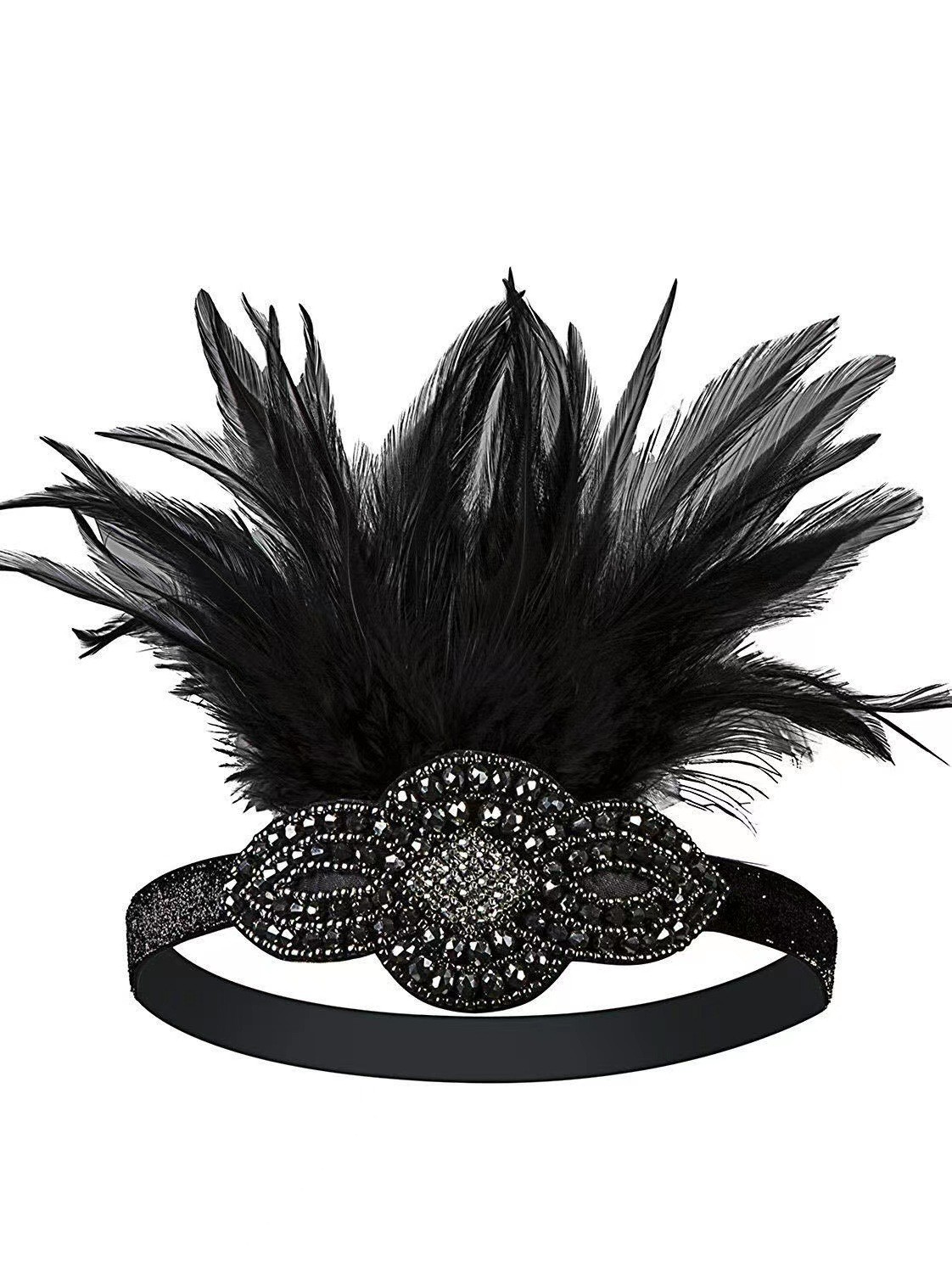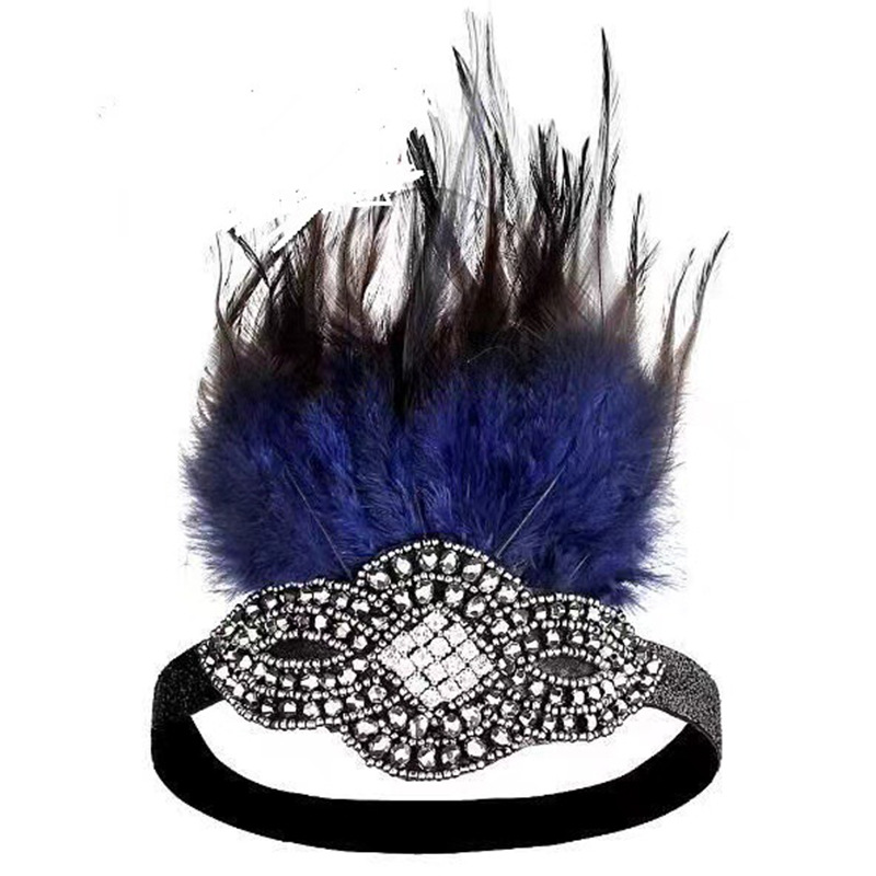 New Masquerade Headband for Women with Diamond Feather Headband Indian Style Headdress Fabric Elastic Headband Wholesale