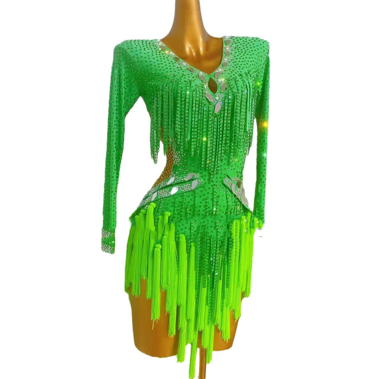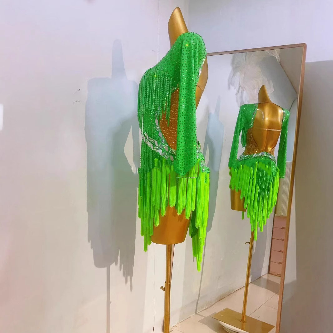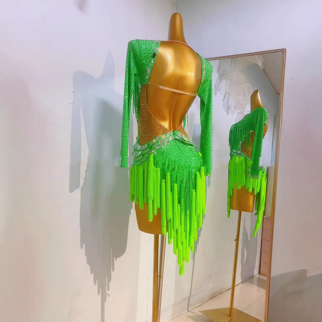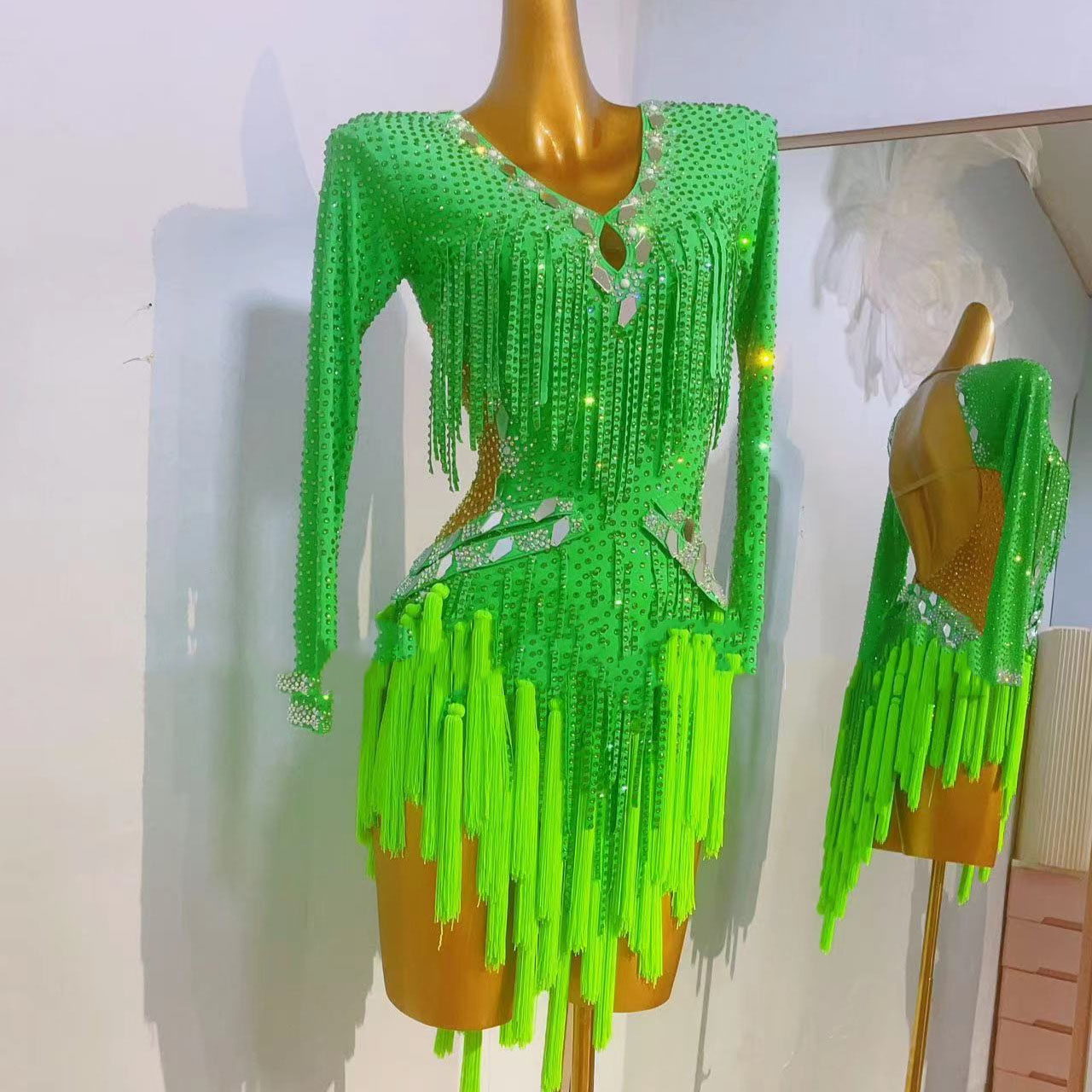New Latin dance performance dress competition dress professional dance dress tassel waist hollow flower dress art exam