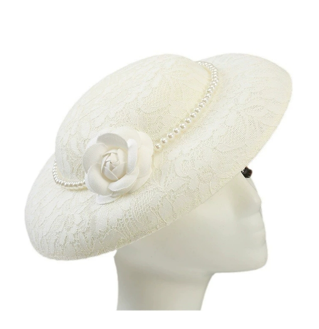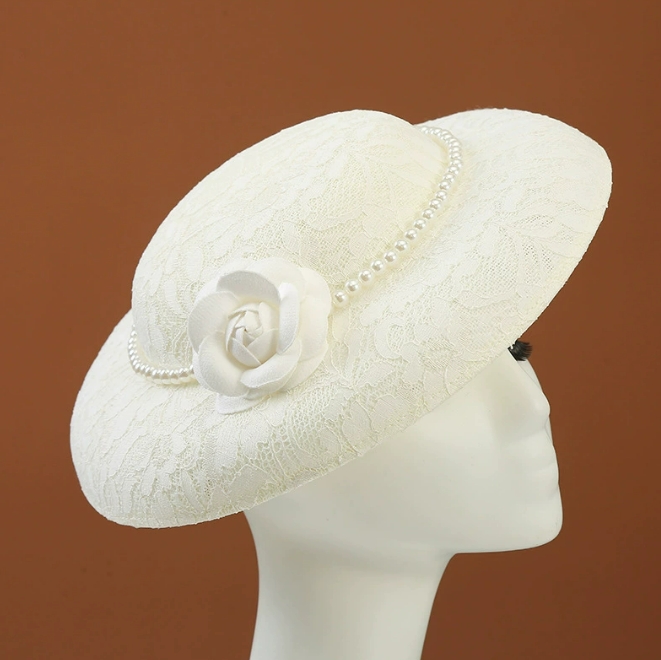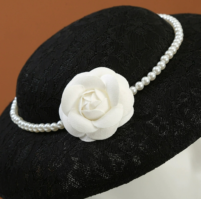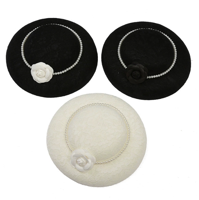 New European and American Sun Hat Hair Accessories Party Dance Pearl Belt Imitation Flower Accessories Hat