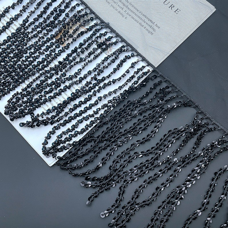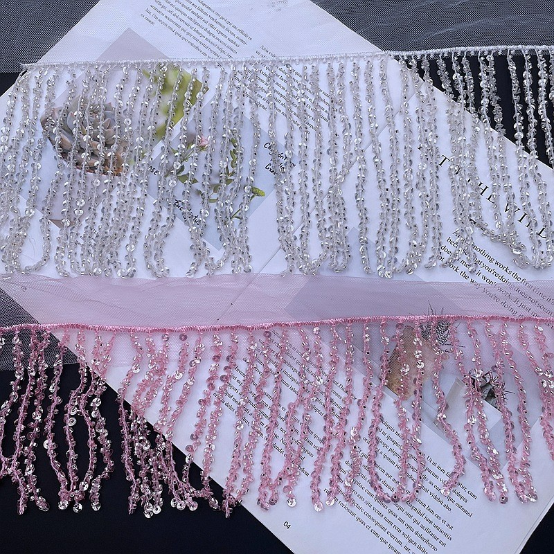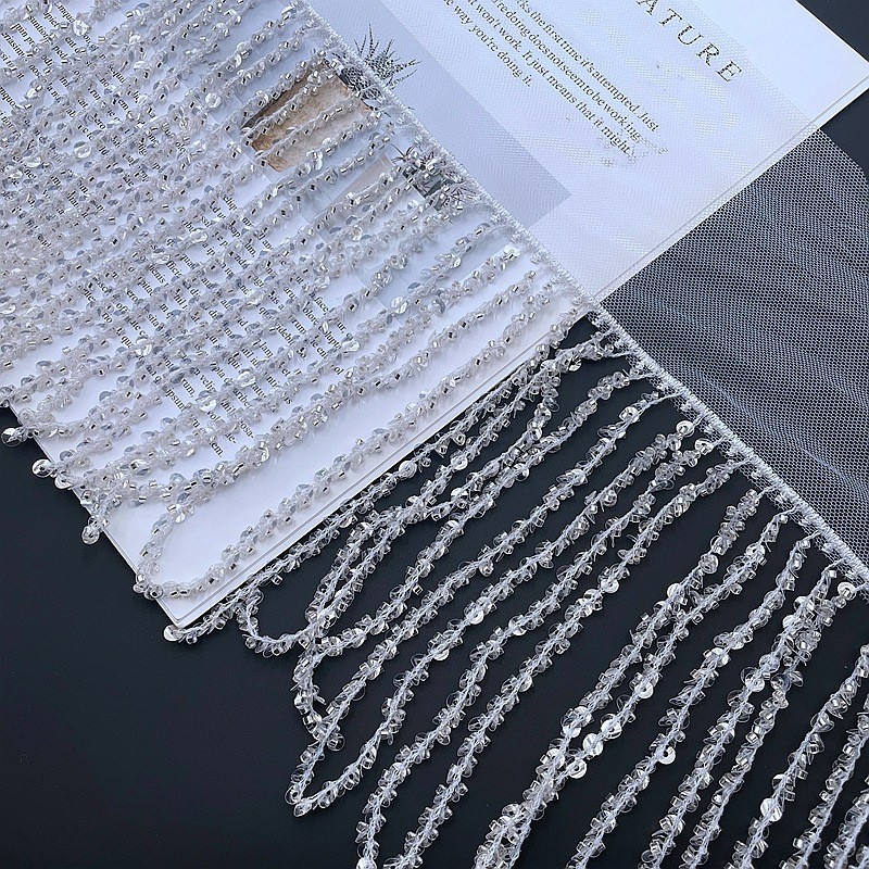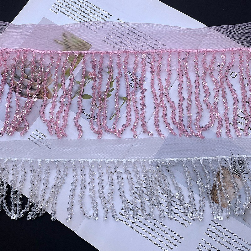 New Mesh Machine Embroidery Sequin Rice Beads Tassel Hanging Beads Lace Dance Skirt Decoration DIY Accessories