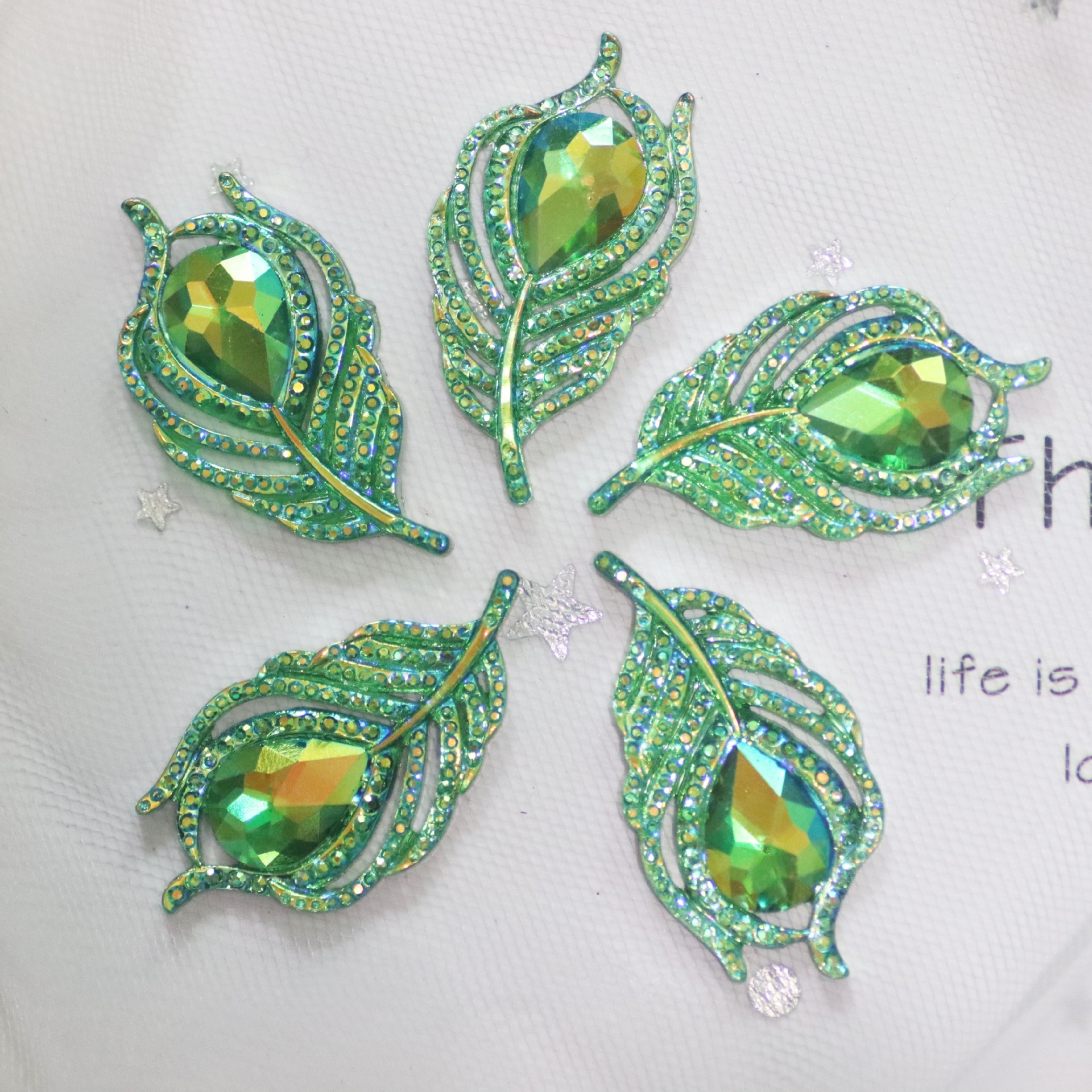 New cross-border 20 * 38mm feather-shaped leaf resin accessories flat-bottomed resin drill clothes bag diy accessories