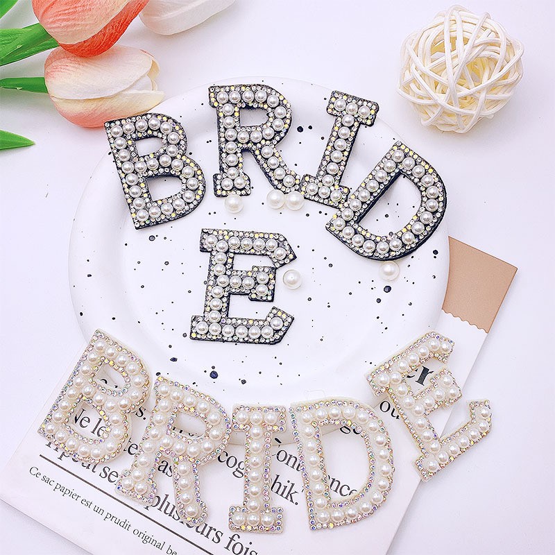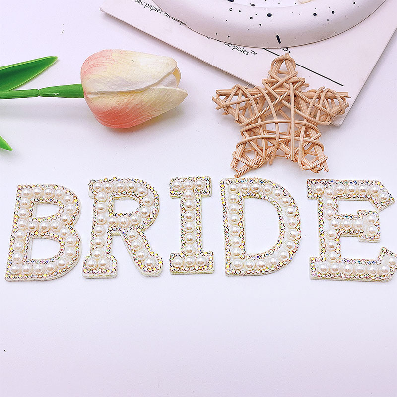 New BRIDE English Letter Hot Diamond Cloth Patch Creative Pearl Letter Hot Diamond Hot Pattern DIY Clothing and Bag Decoration