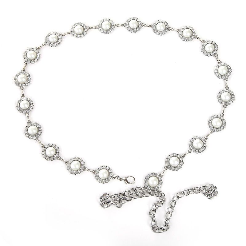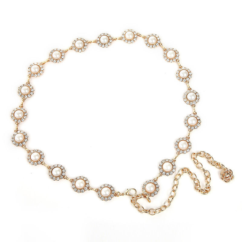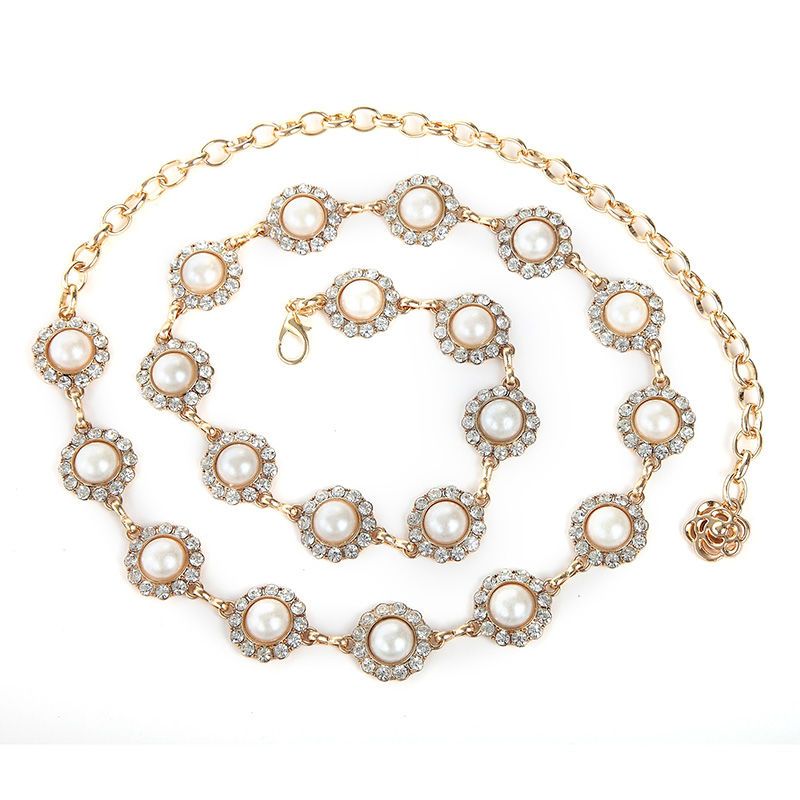 Fashion Versatile Women's Metal Belly Dance Waist Chain Pearl Rhinestone Inlaid Decorative Thin Belt