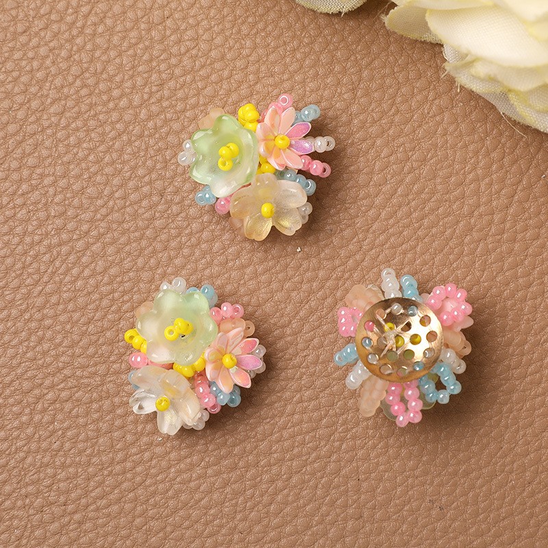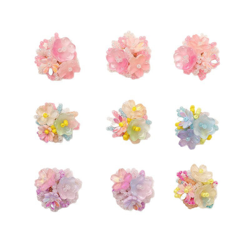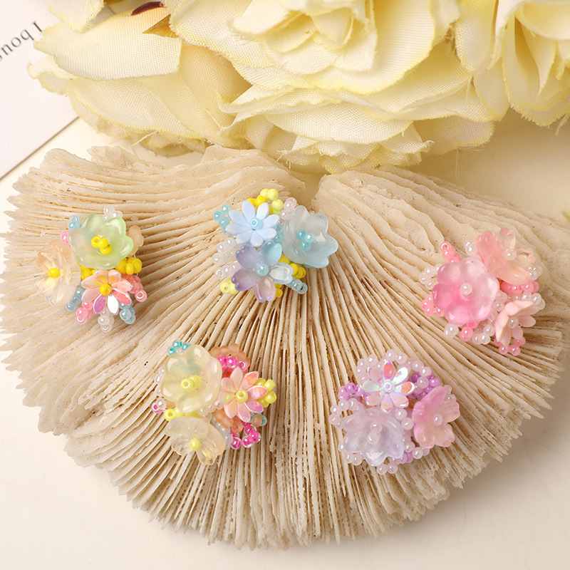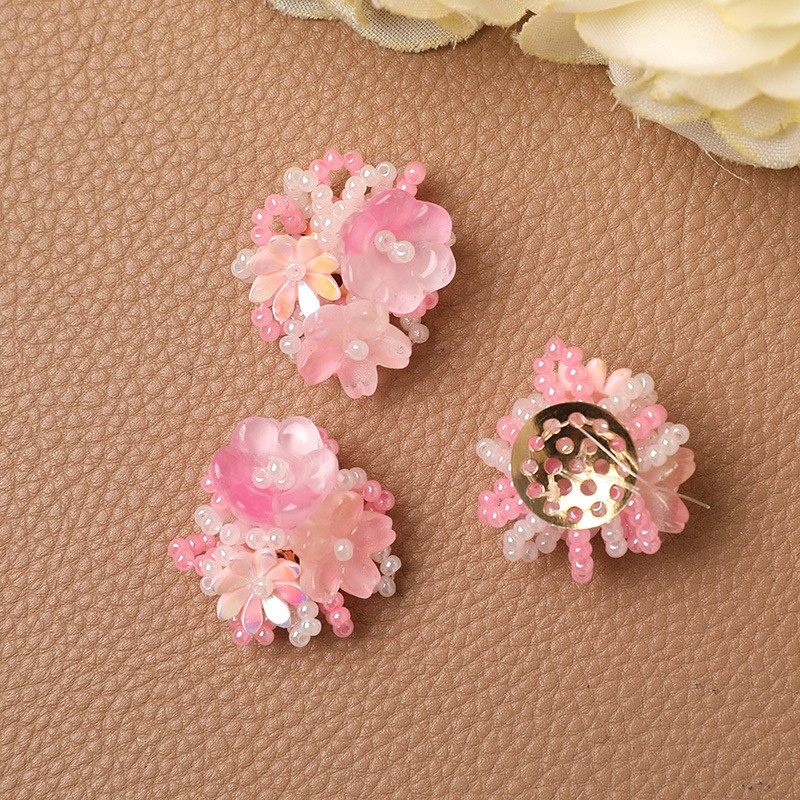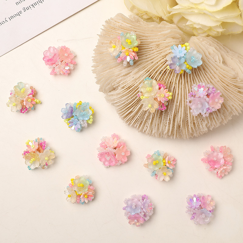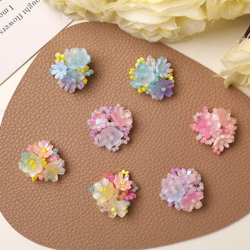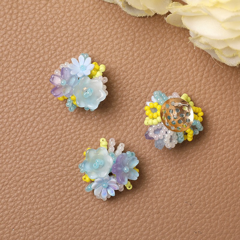 Spring and Summer Atmosphere Flower Sea Rice Bead Hydrangea Flower Cluster DIY Dopamine Girl Earrings Ear Accessories Side Clip Shoe Flower Accessories