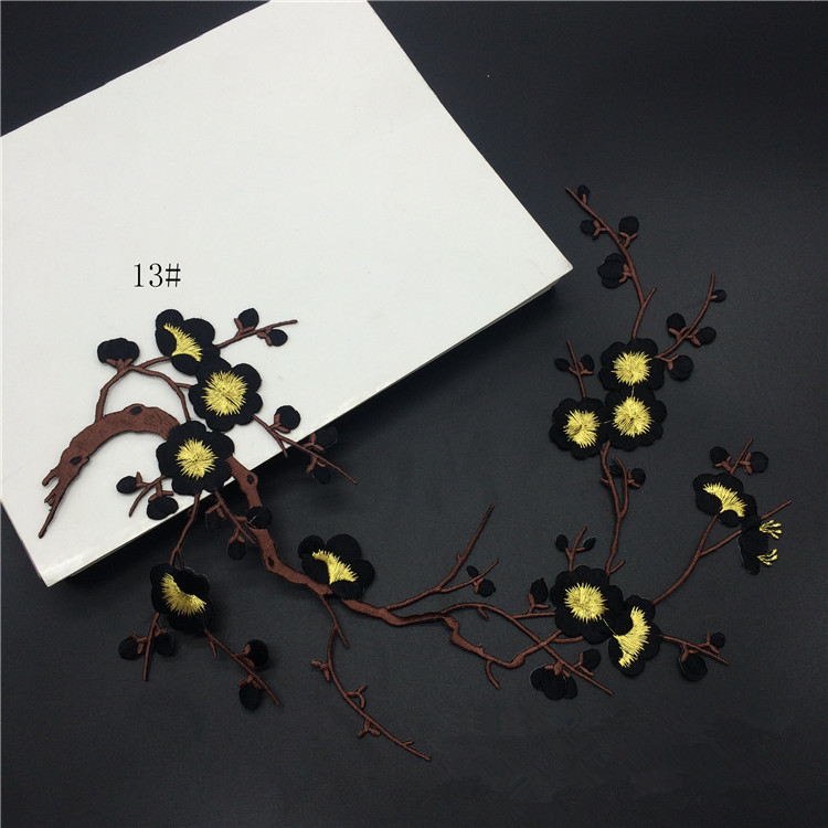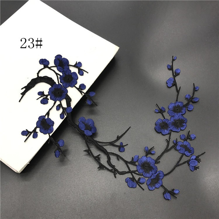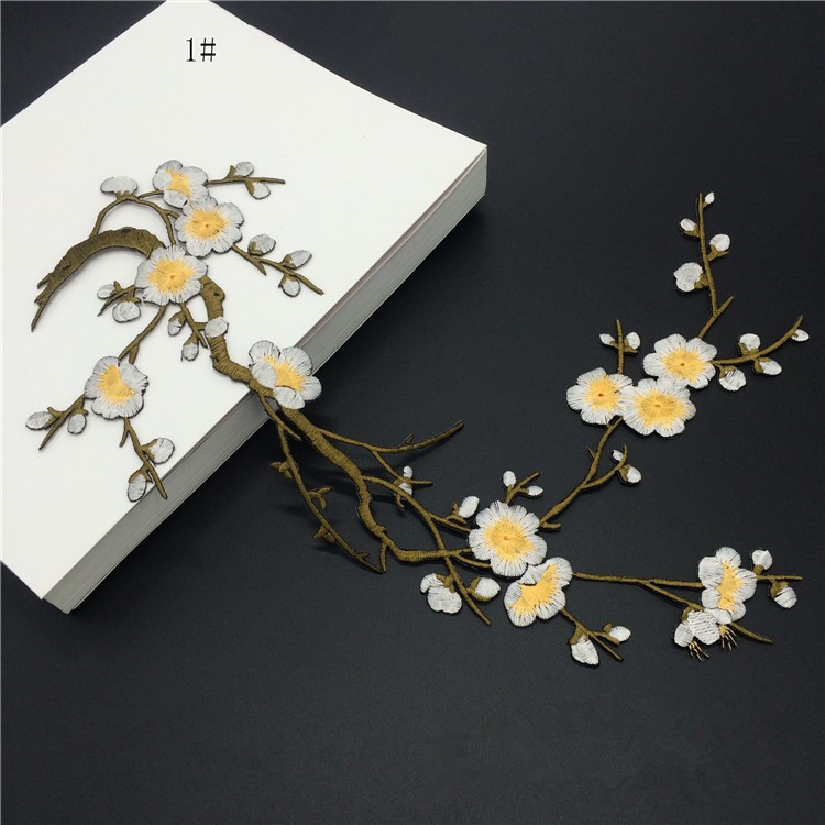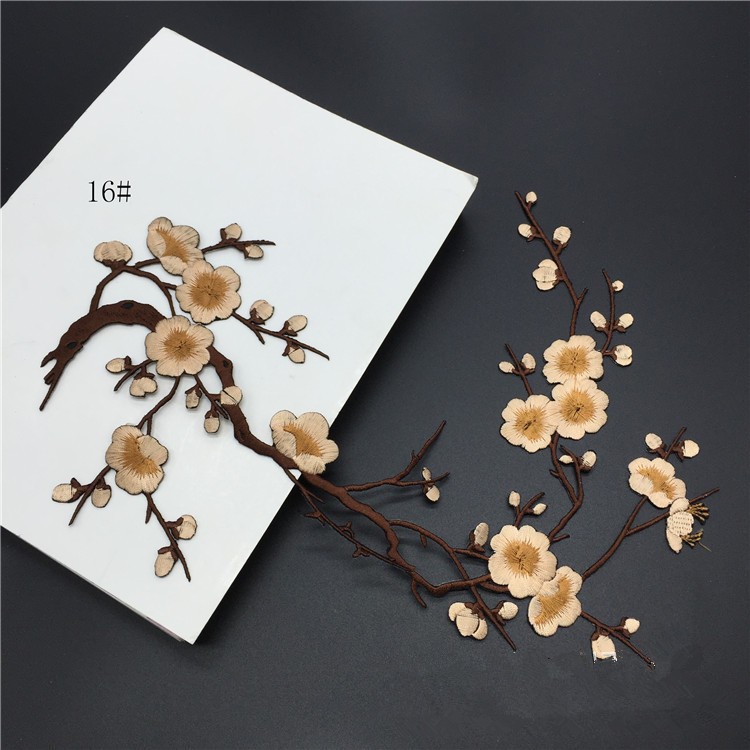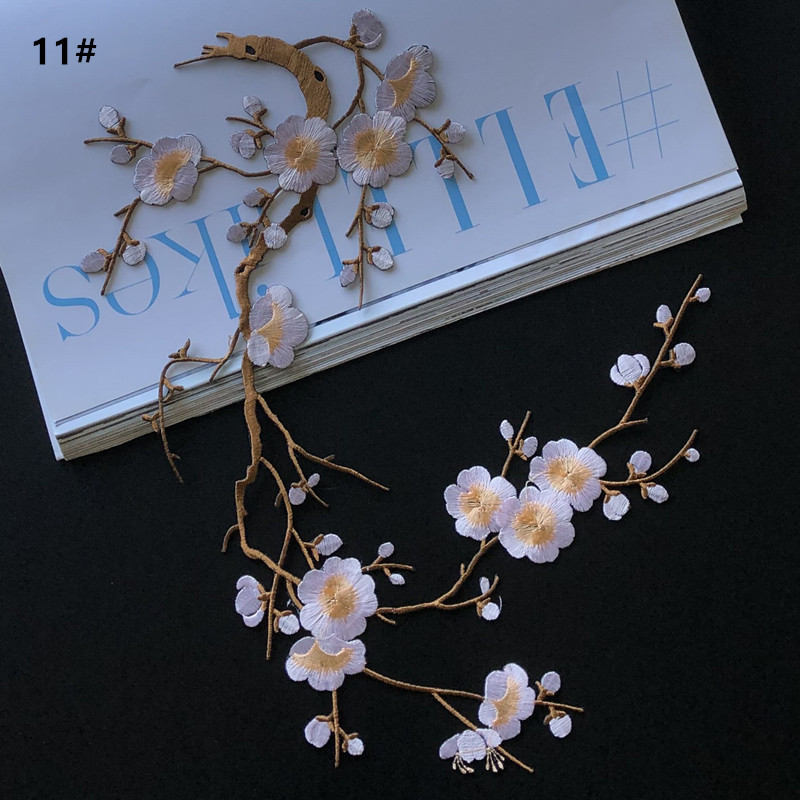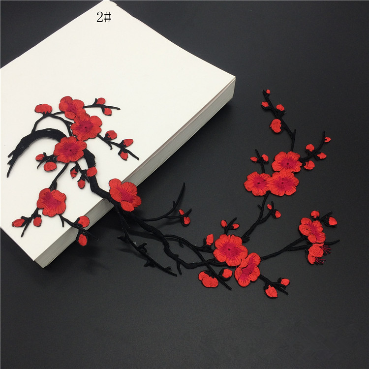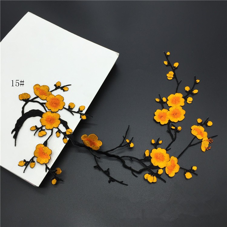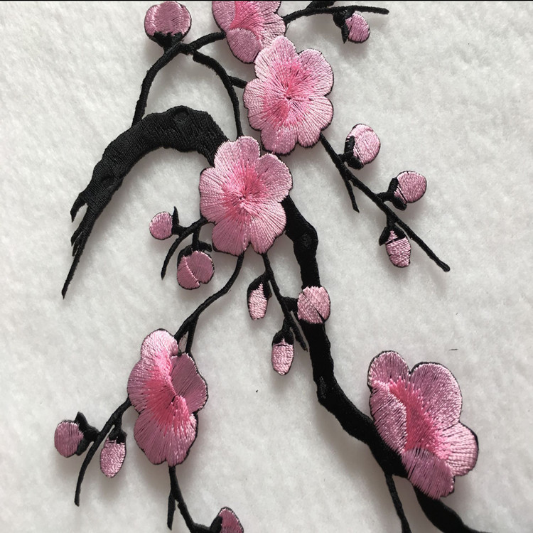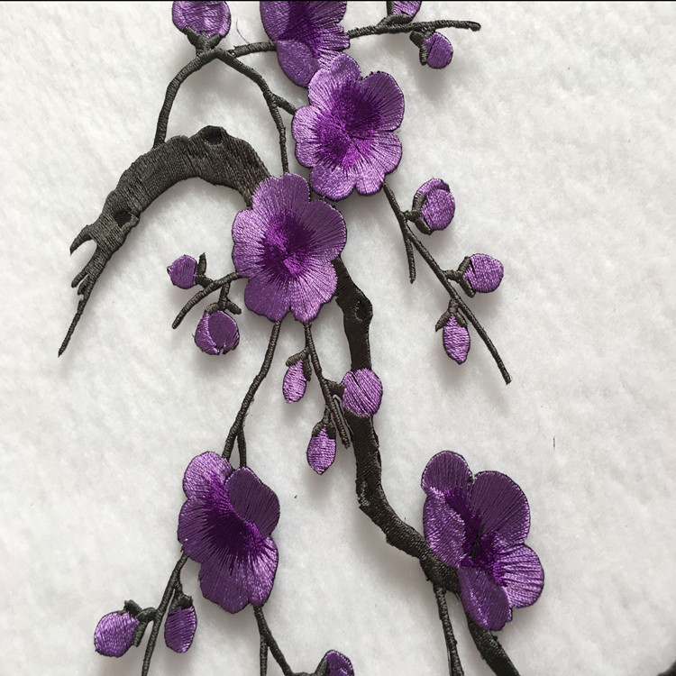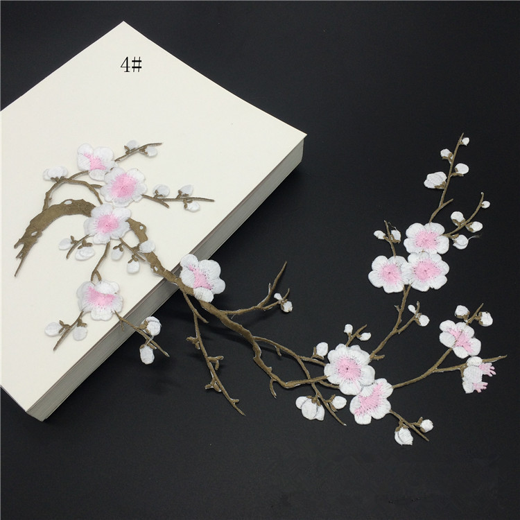 Wholesale Plum Blossom Embroidery Patch Computerized Flower Applique Iron On Patch for Clothing Repair DIY Decorative Accessories