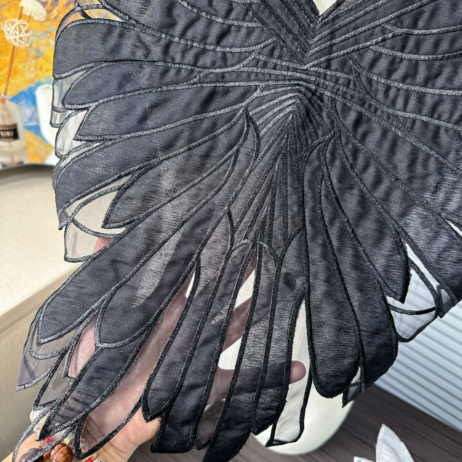 Organza Embroidered Angel Wings Front Neck Stage Dress Decorated with Simple Appliques