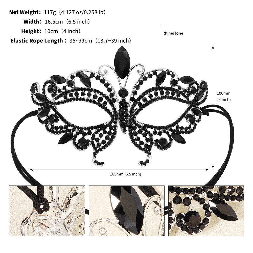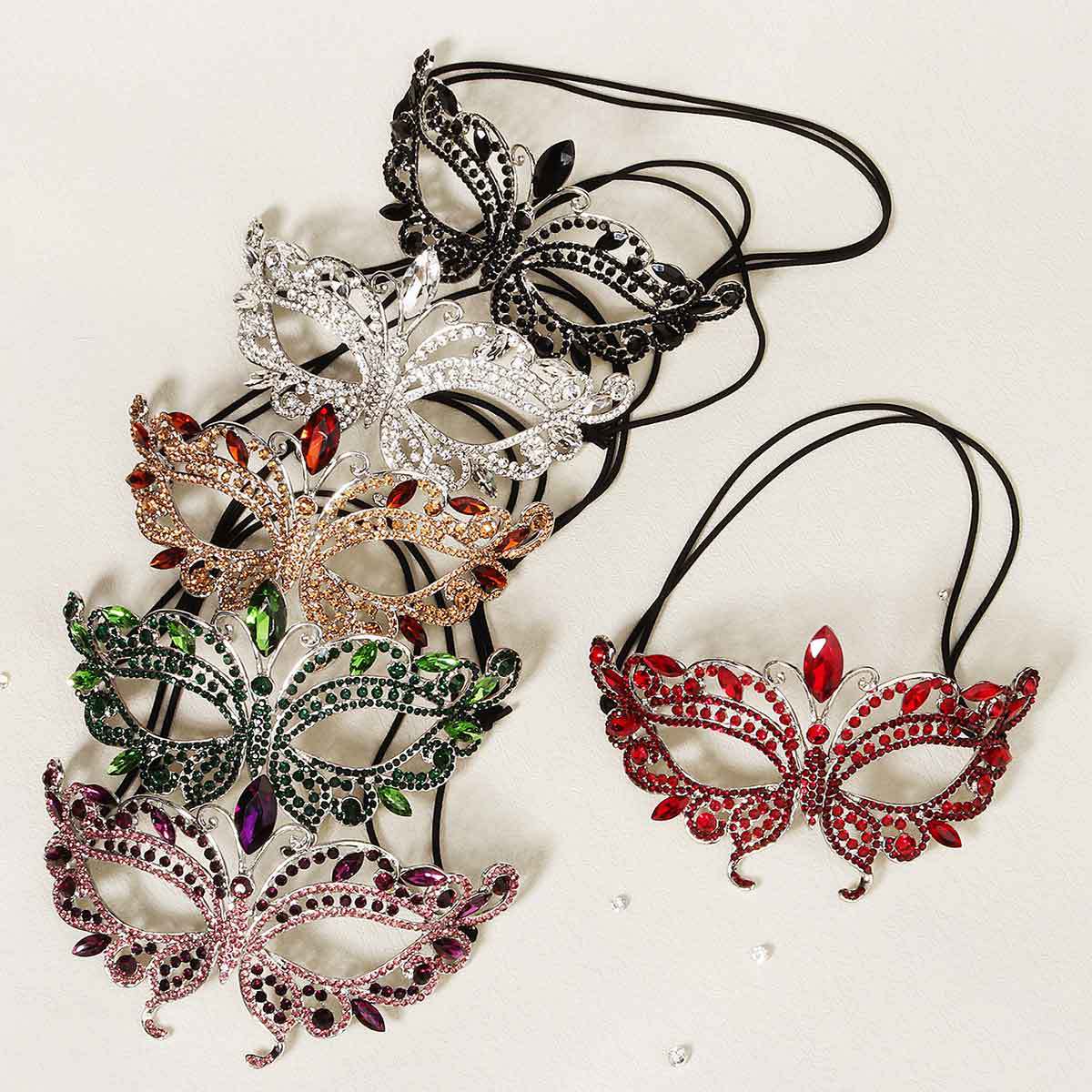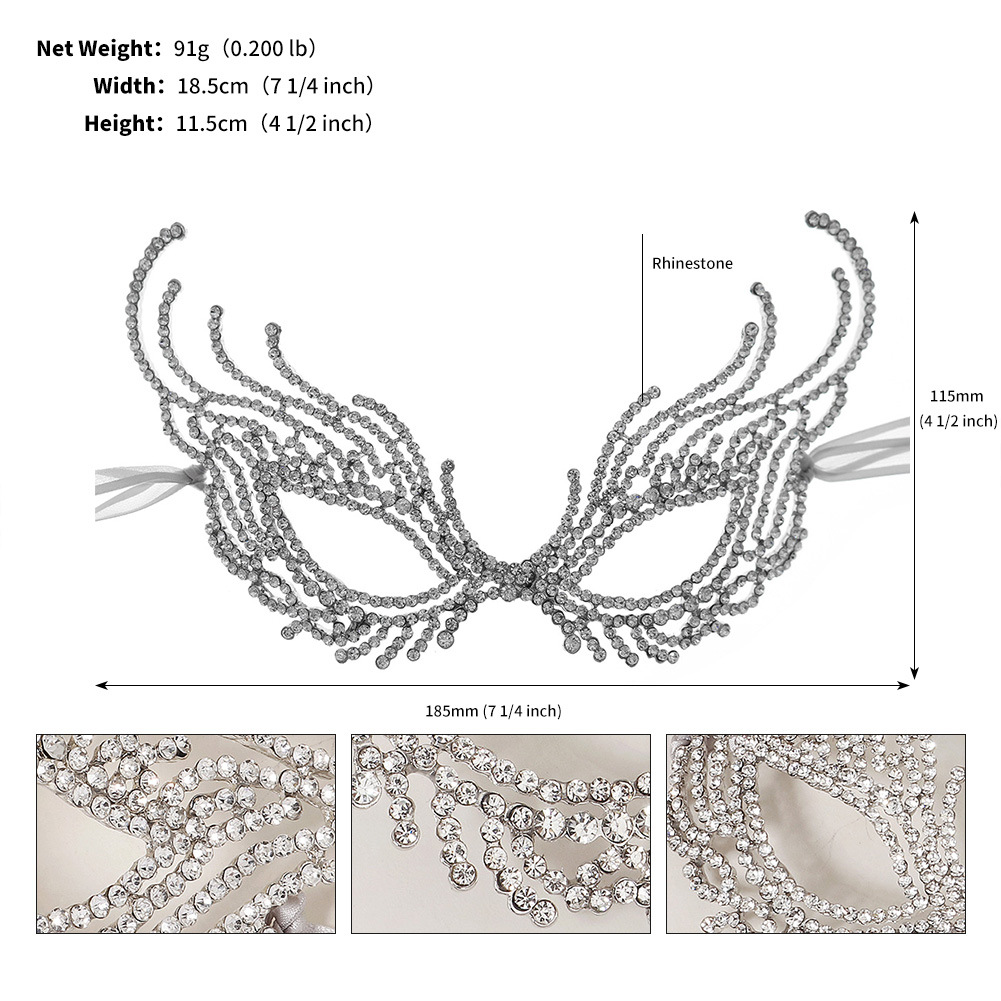 European and American Creative Catwalk Masquerade Mask for Women Halloween Party Half Face Mask Alloy Rhinestone Wedding Accessories