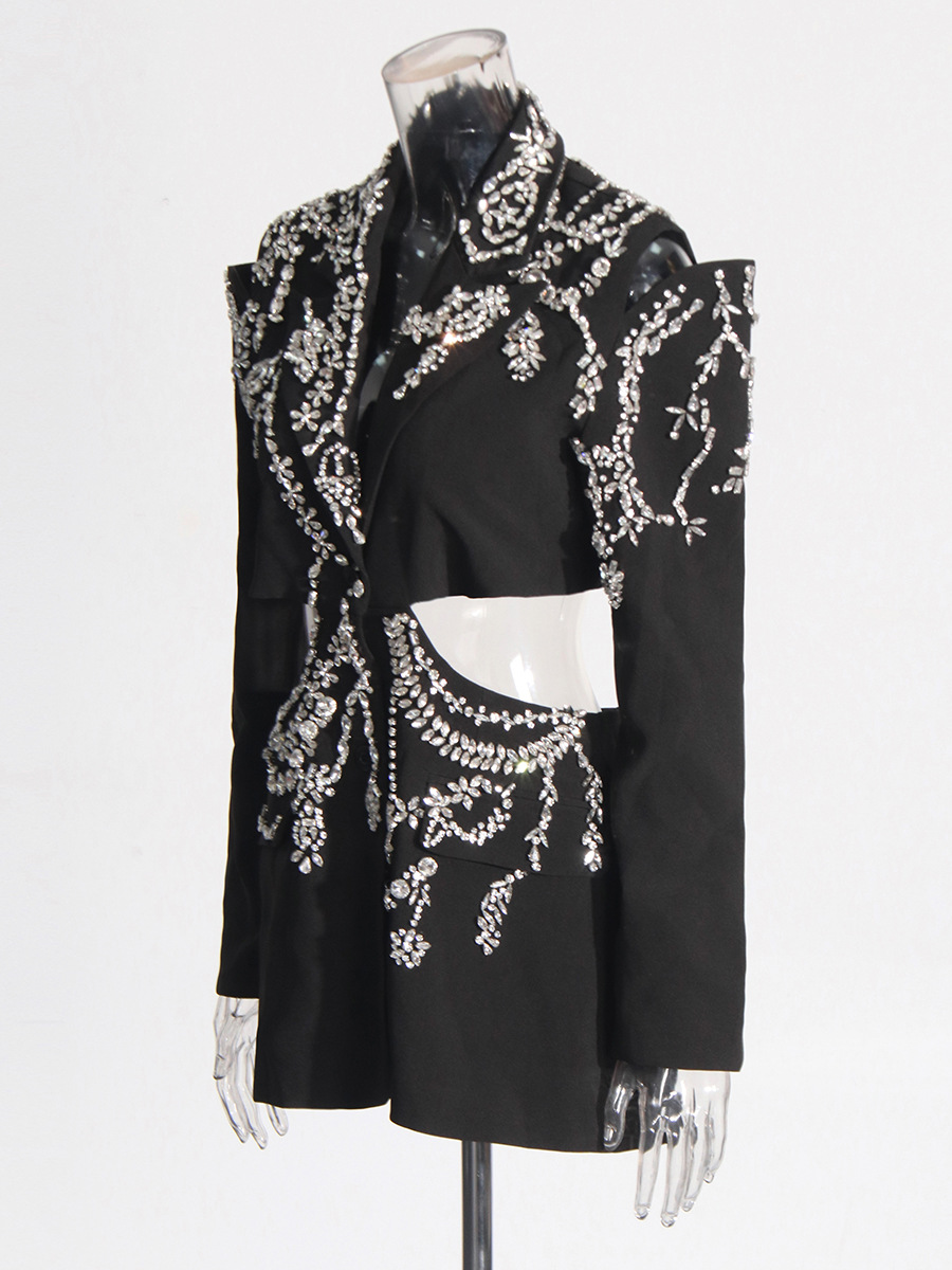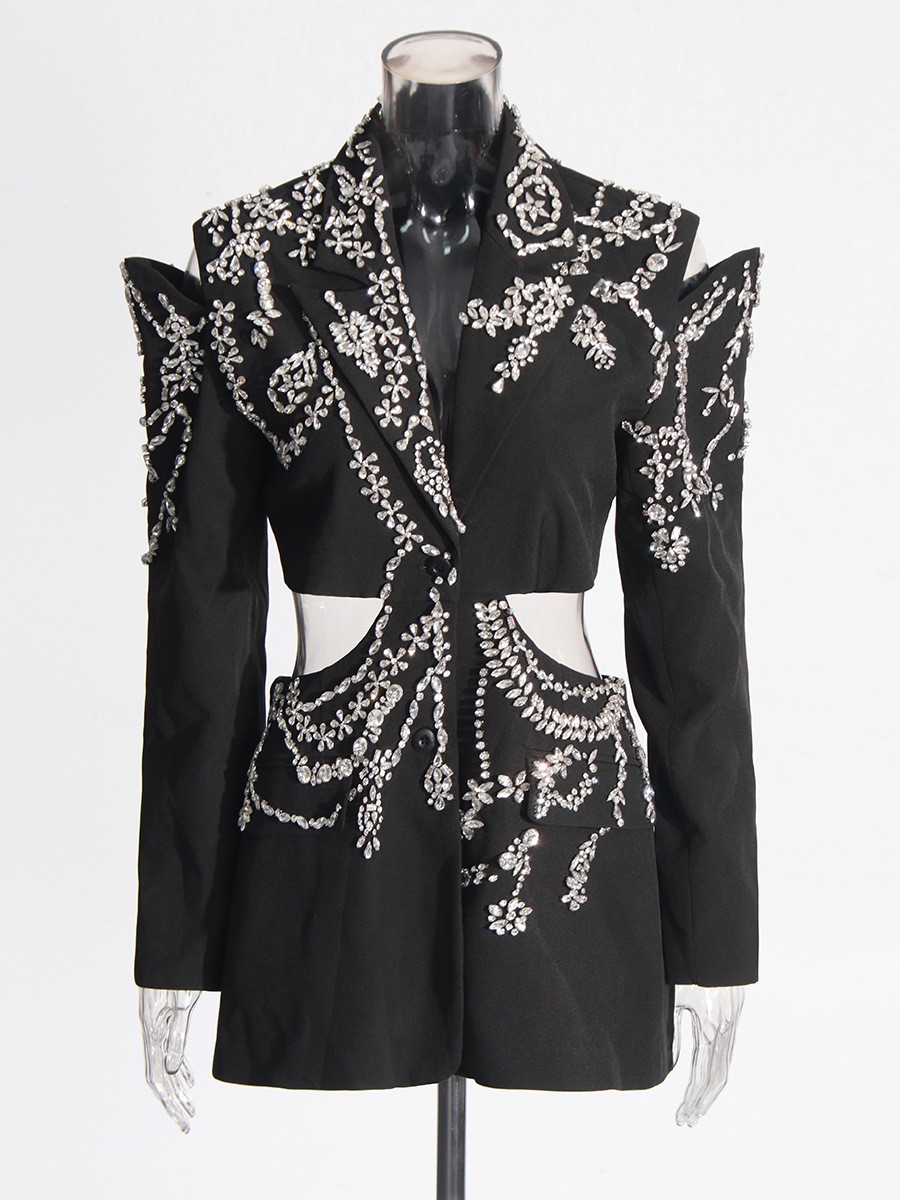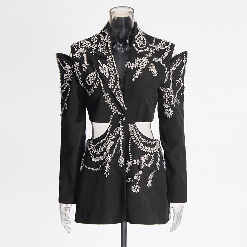 European and American Sexy Style Jacket 2025 New Rhinestone Nail Beads Exposed Waist High-end Long-sleeved Suit Women