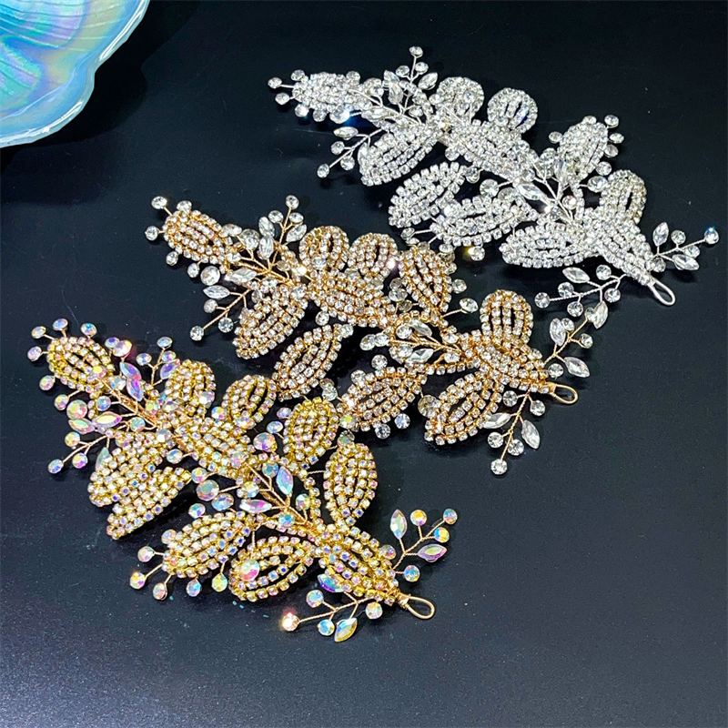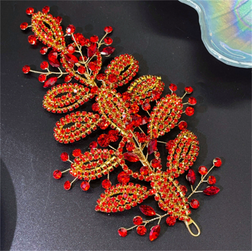 European and American handmade rhinestone headband, original design, new bride headpiece, colorful leaf hair accessories