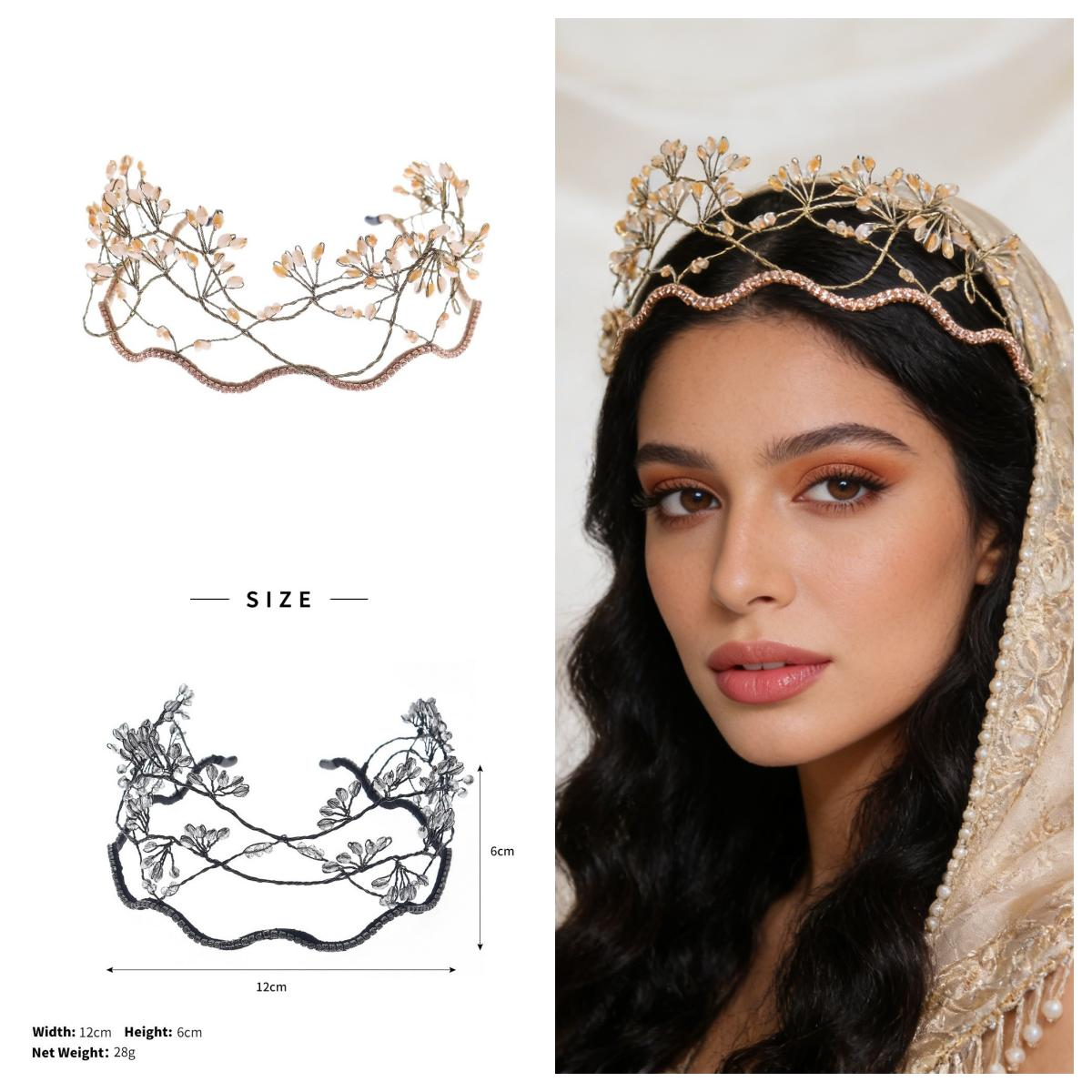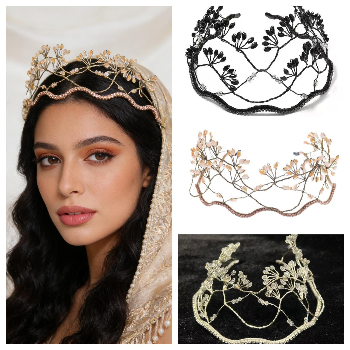 European and American style bridal headpiece, crystal beaded crown, party wedding birthday hair accessory, hand-braided fairy-like mesh headband