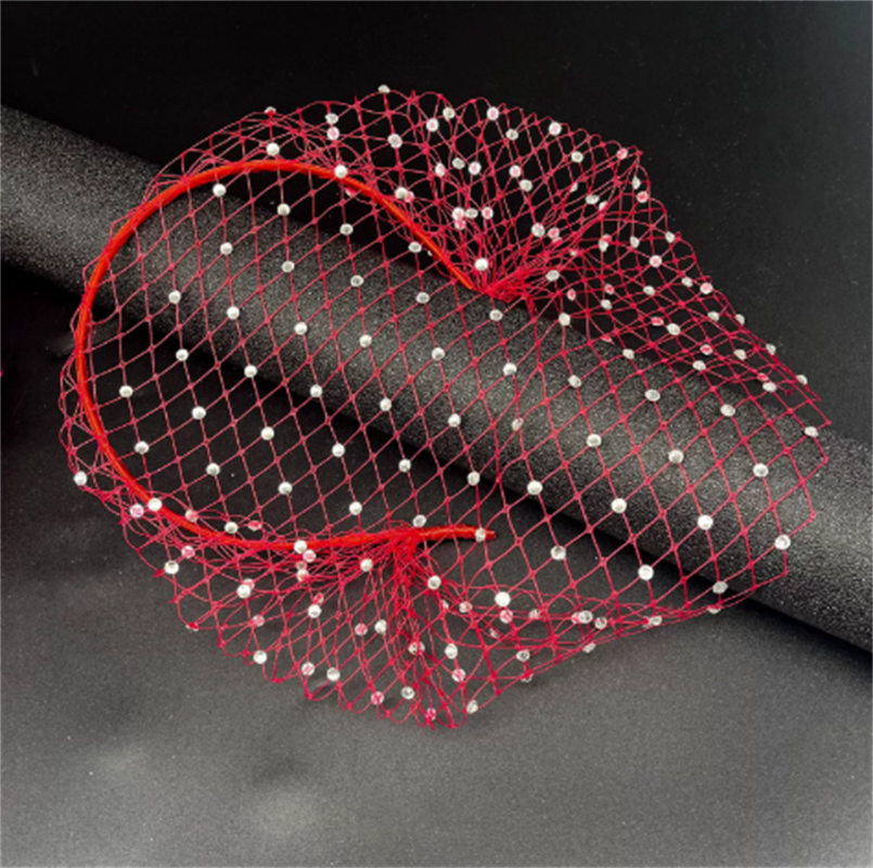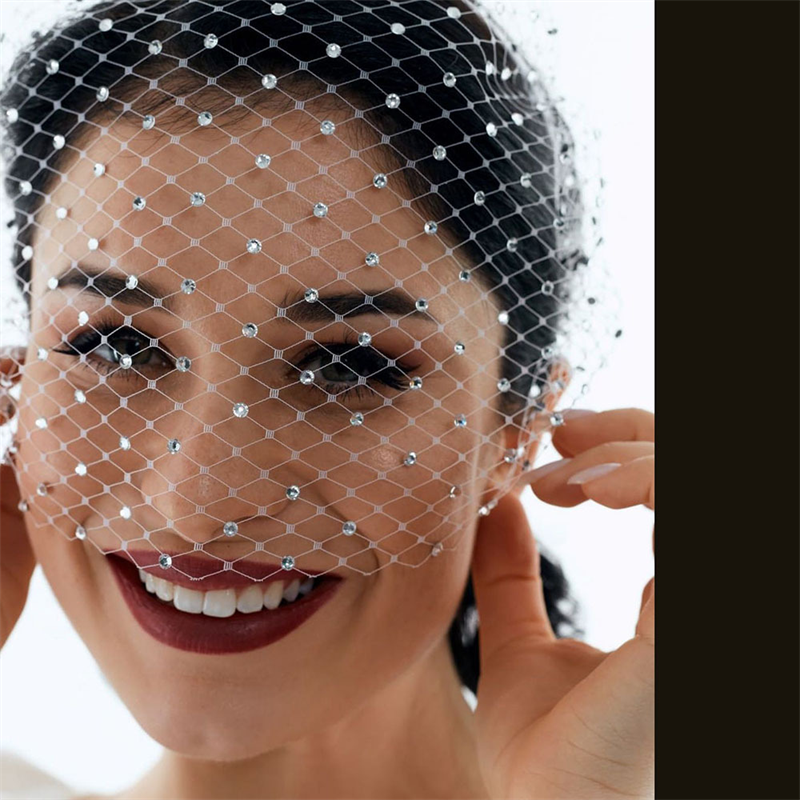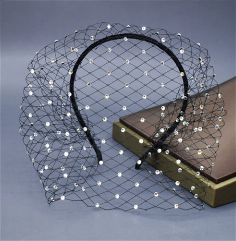 European and American rhinestone veil, encrypted diamond mesh headband, black and white bridal headdress, dance party accessories