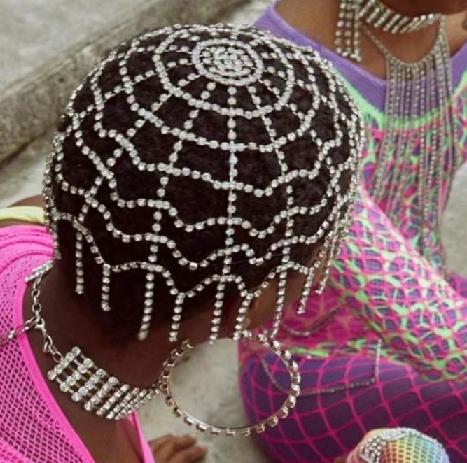 Mesh Headdress Personalized Tassel Diamond Hair Chain Bride Rhinestone Luxury Headdress Rhinestone Hat