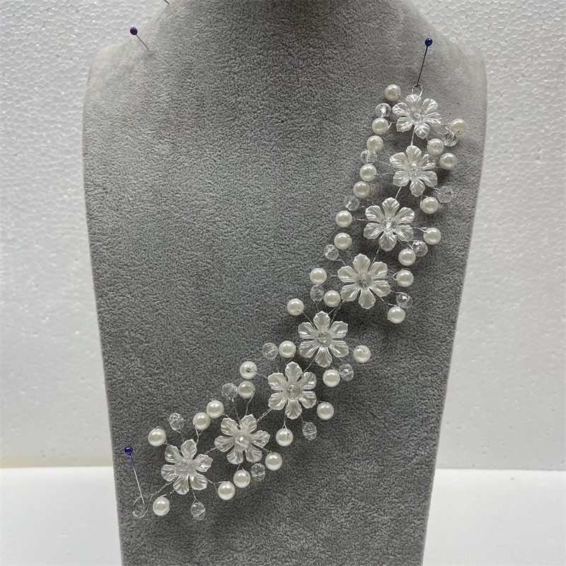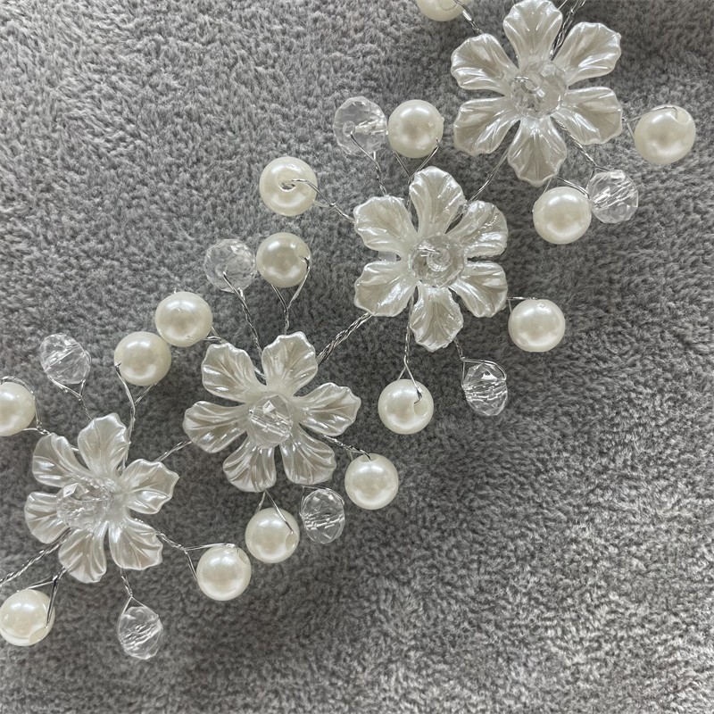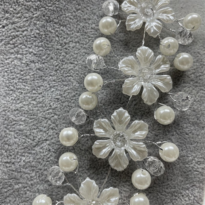 White acrylic flower crystal soft chain bridal wedding headband headdress wholesale
