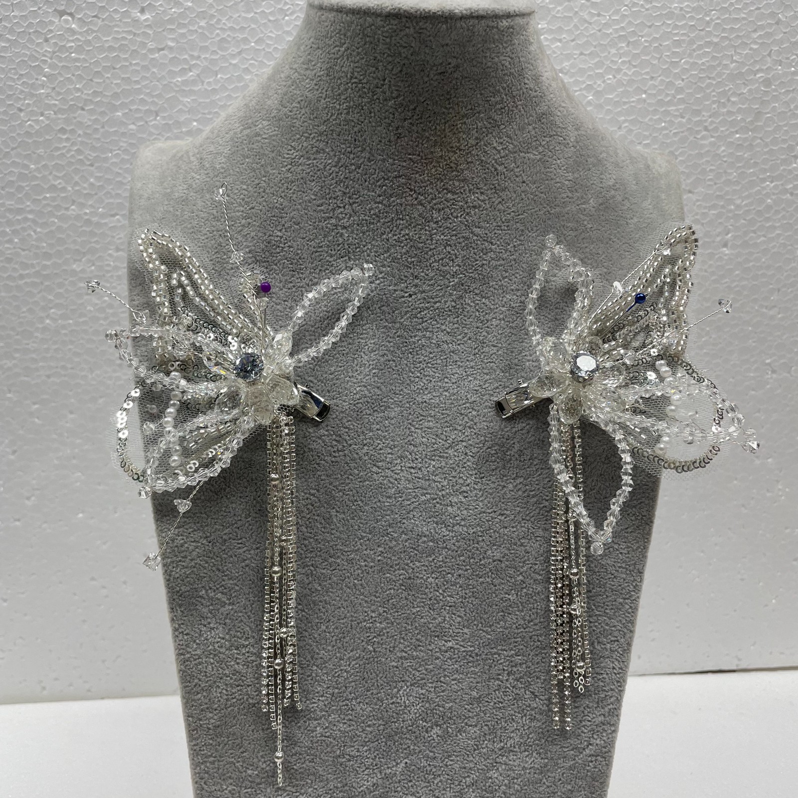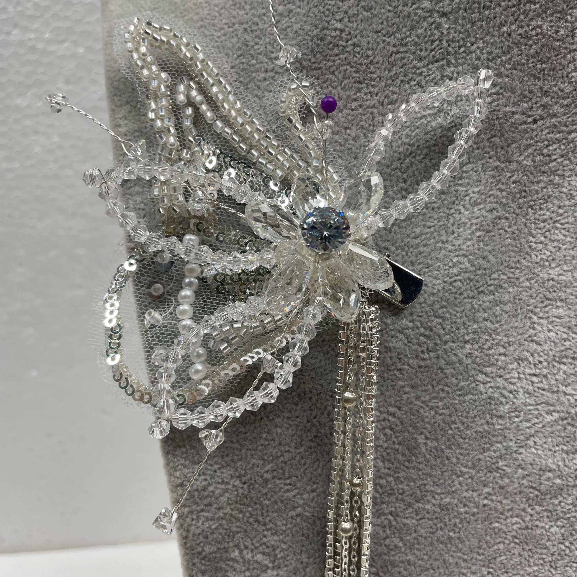 European and American silver diamond alloy leaf handmade side clip headdress bridal wedding hair accessories