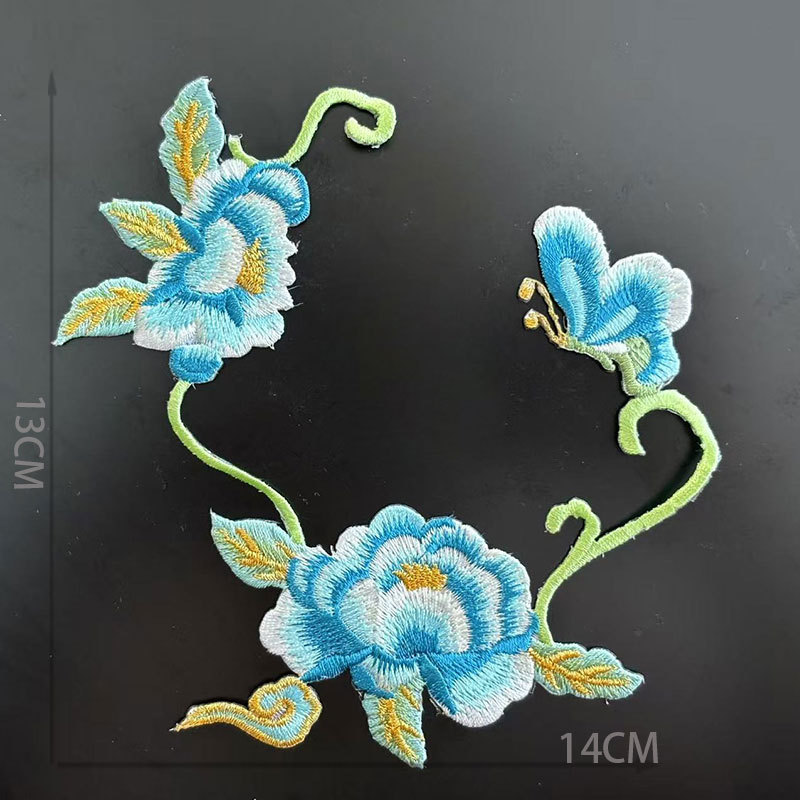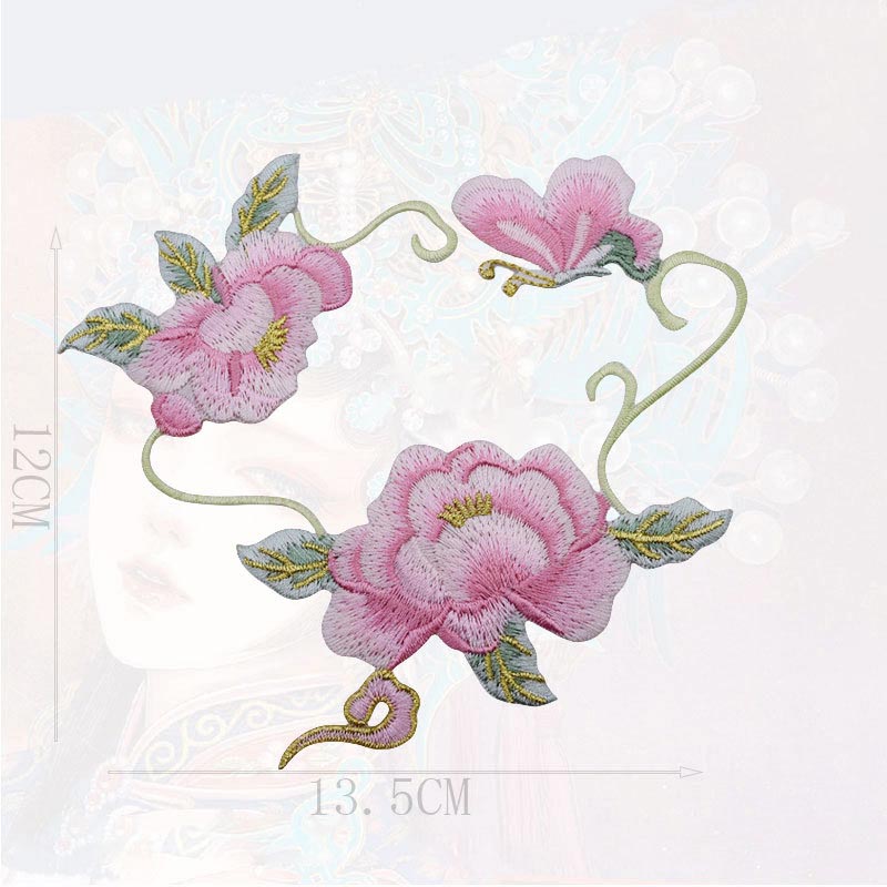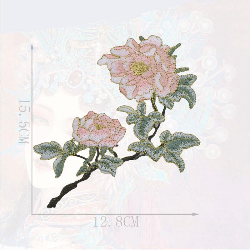 Ethnic Embroidery Iron-On Peony Flower Patches for Bags Hats Shoes & Home Textiles