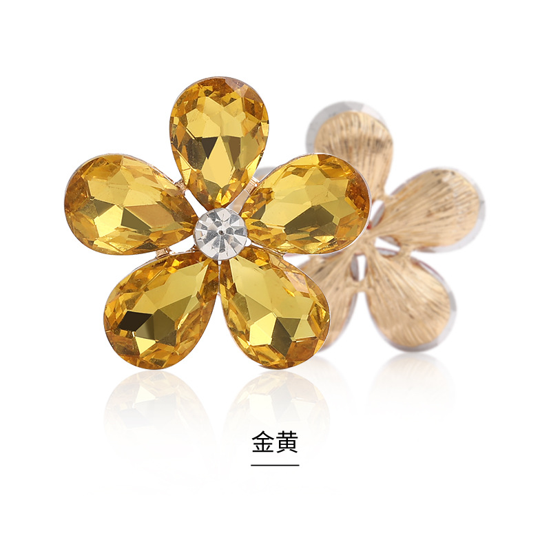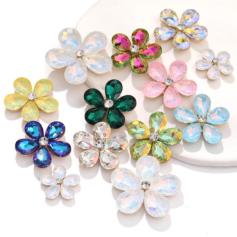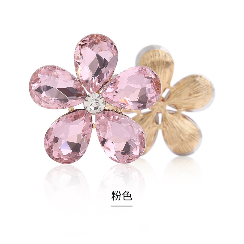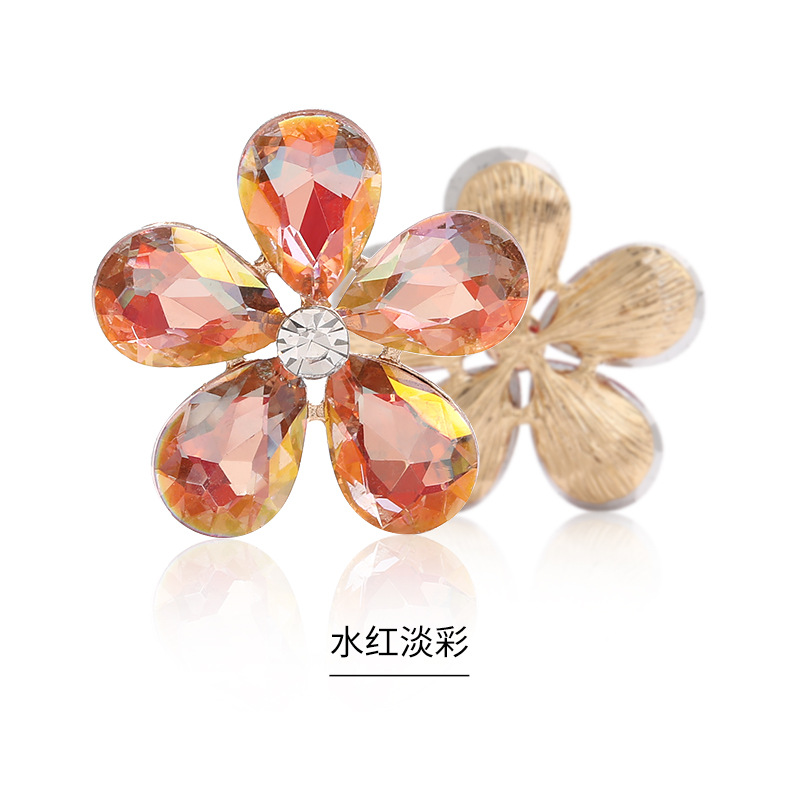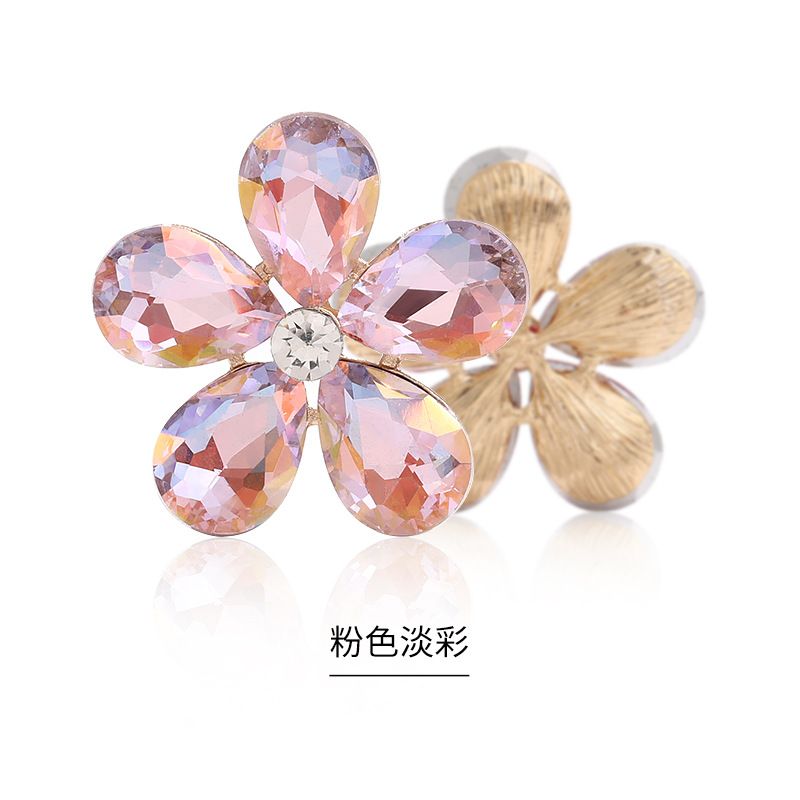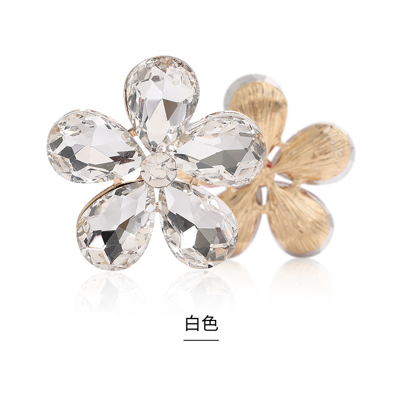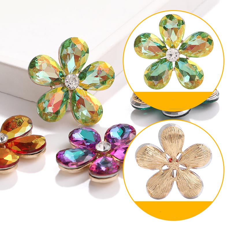 Five-Petal Rhinestone Zinc Alloy Flower Patches for Shoes & Bags-Detachable Design