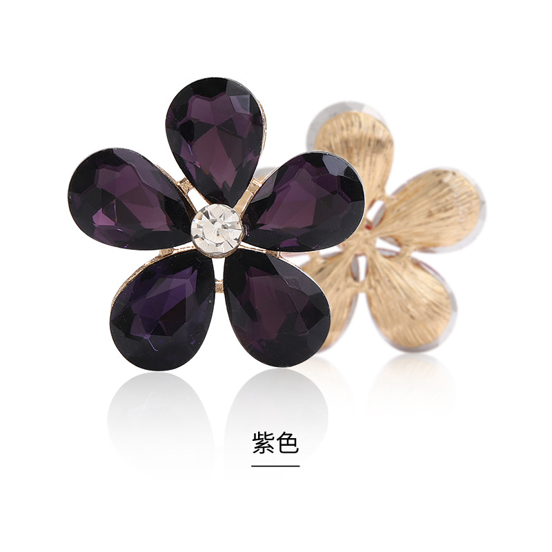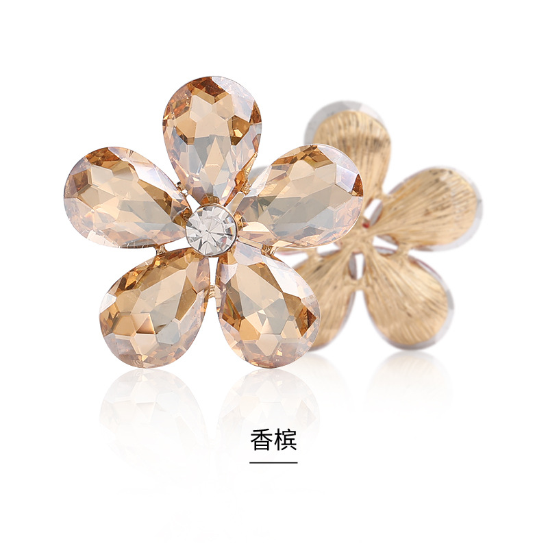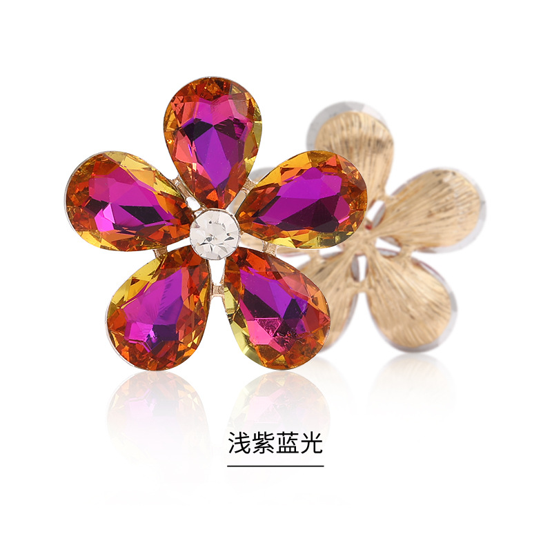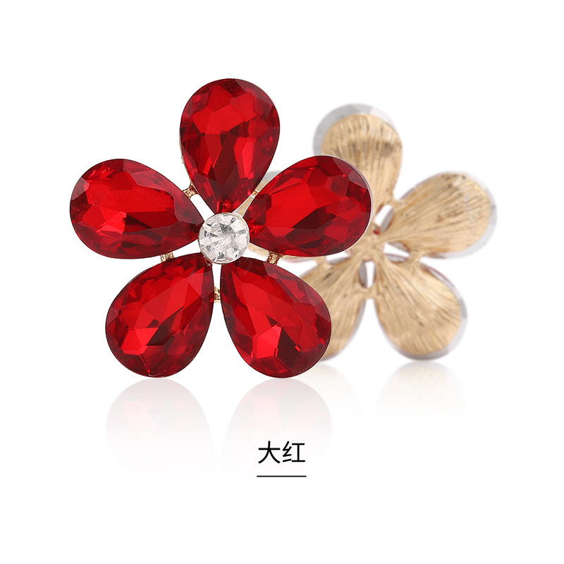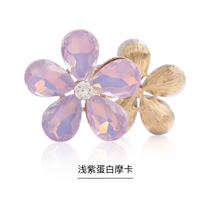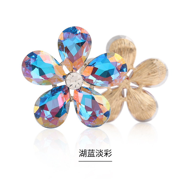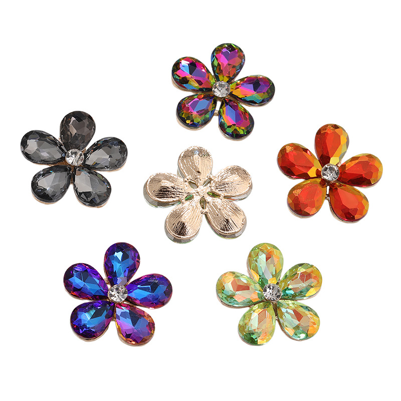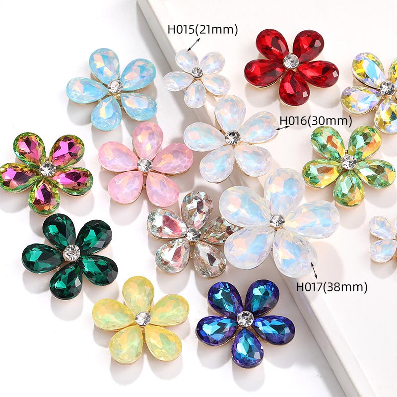 Five-Petal Rhinestone Zinc Alloy Flower Patches for Shoes & Bags-Detachable Design