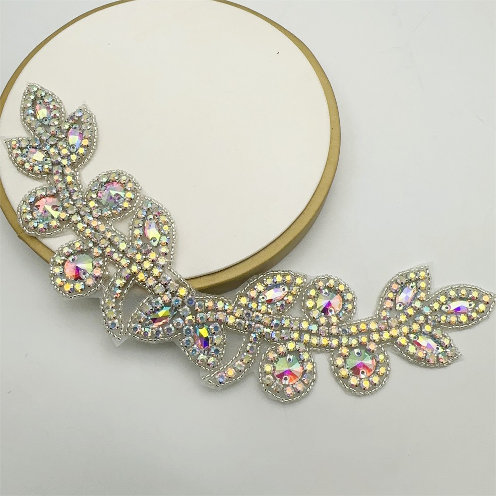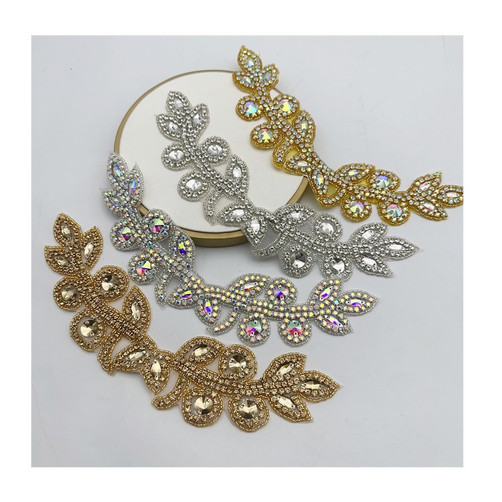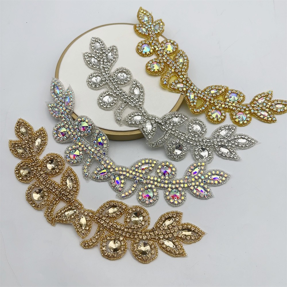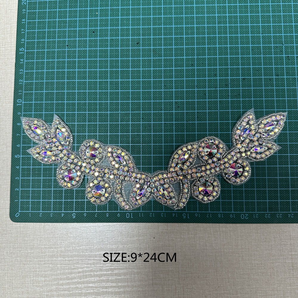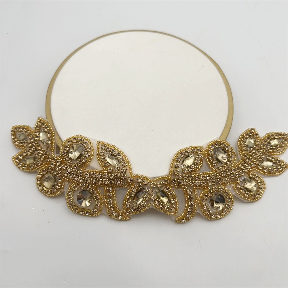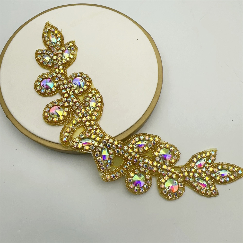 Rhinestone Collar Flower Gold AB Color Rhinestone Applique Dress Dress with Adhesive Diamond Decoration