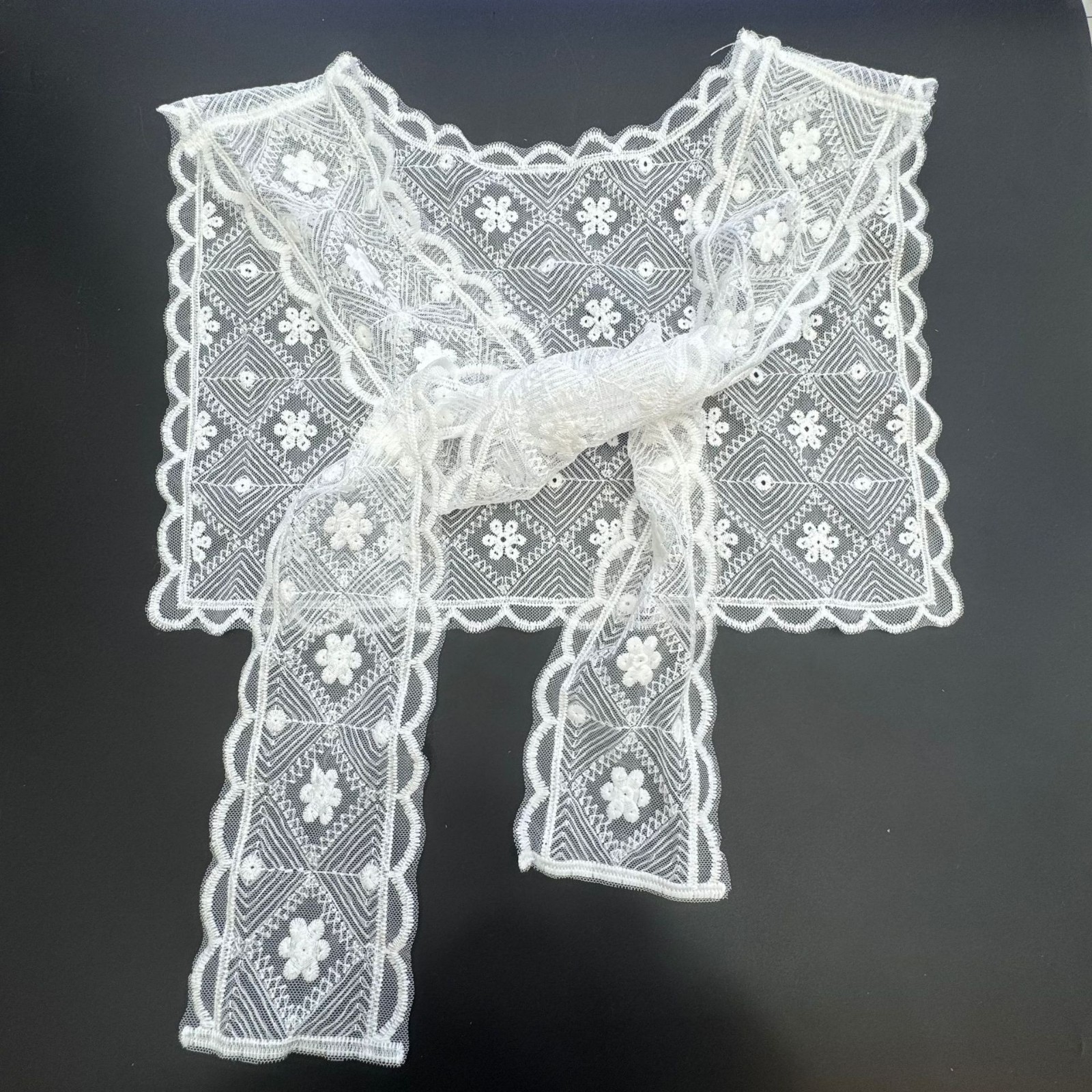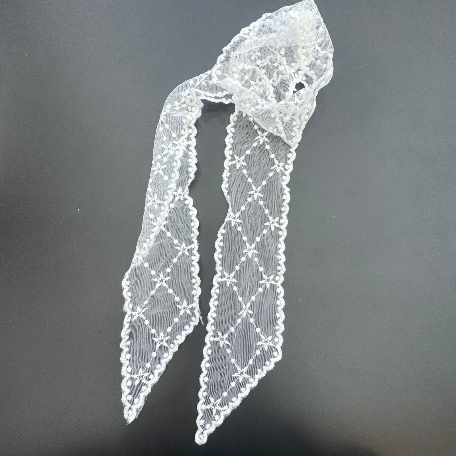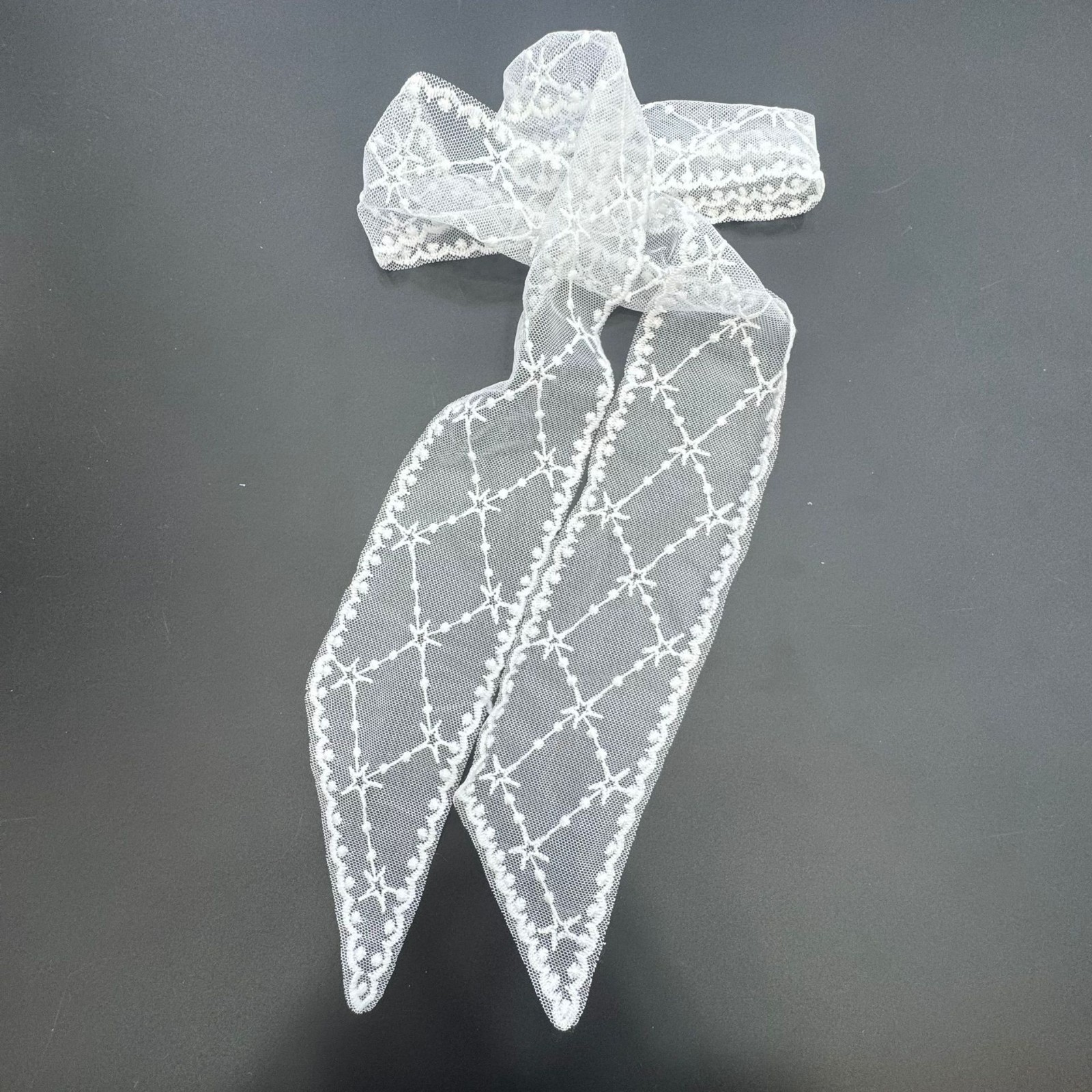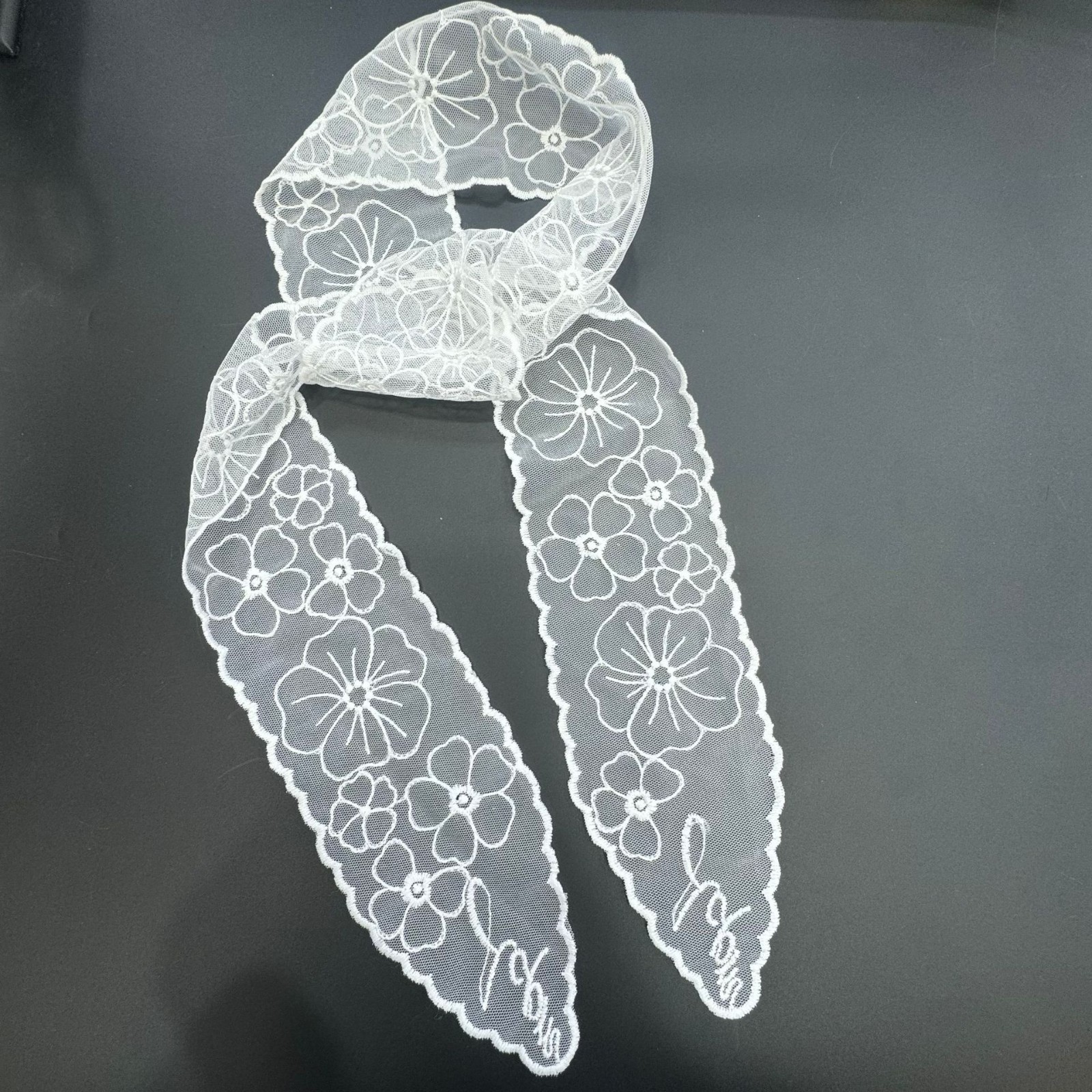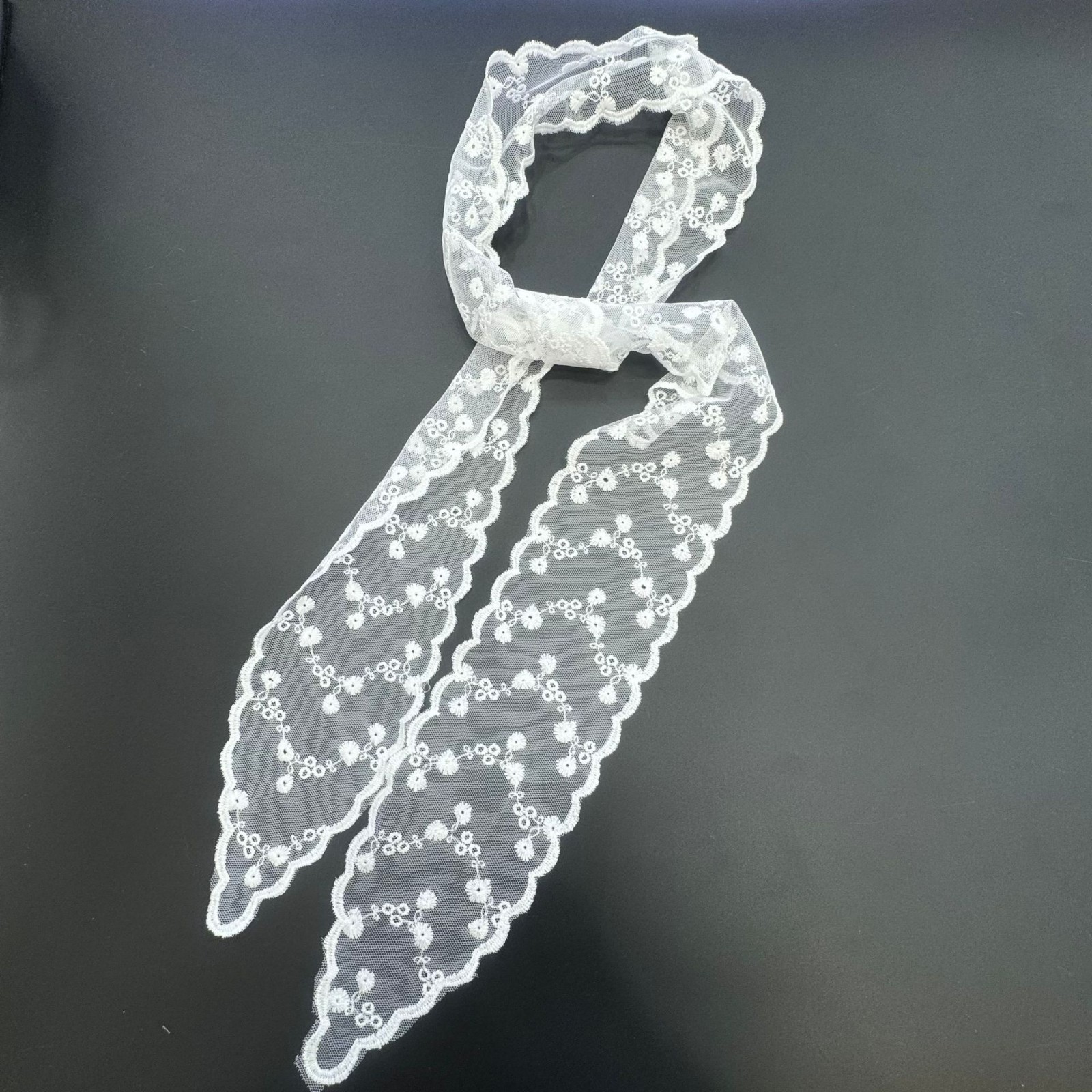French Temperament Lace Embroidered Silk Scarf Headband Super fairy Girl Ribbon Headscarf