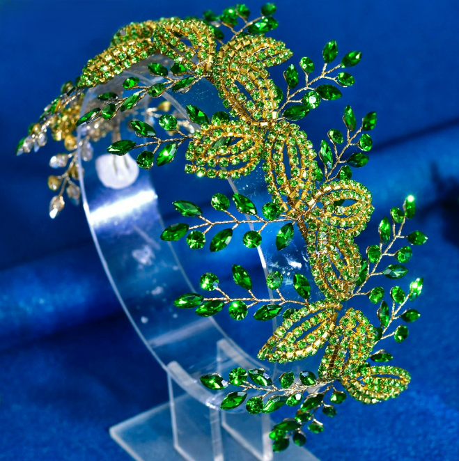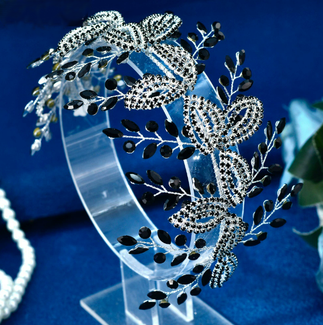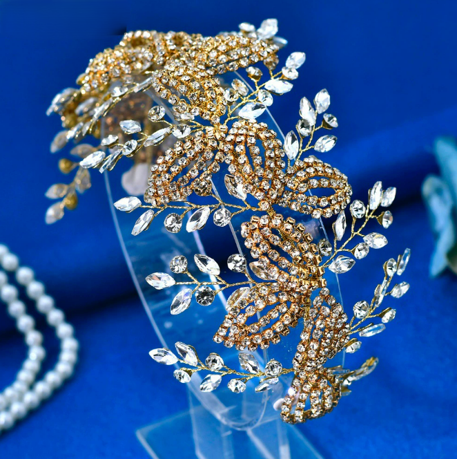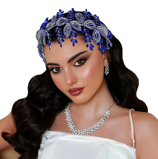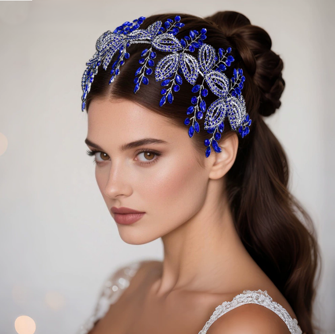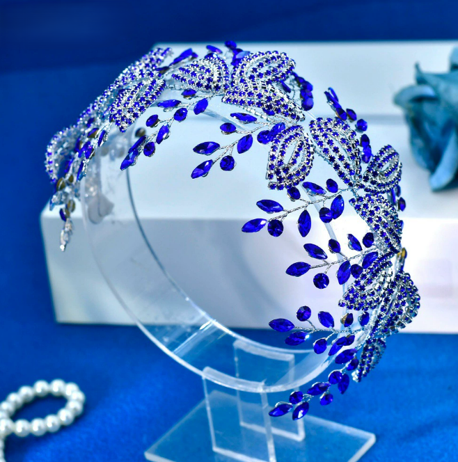French Romantic Retro Bridal Headband Blue Rhinestone Exquisite Headdress Wedding Dress Accessories