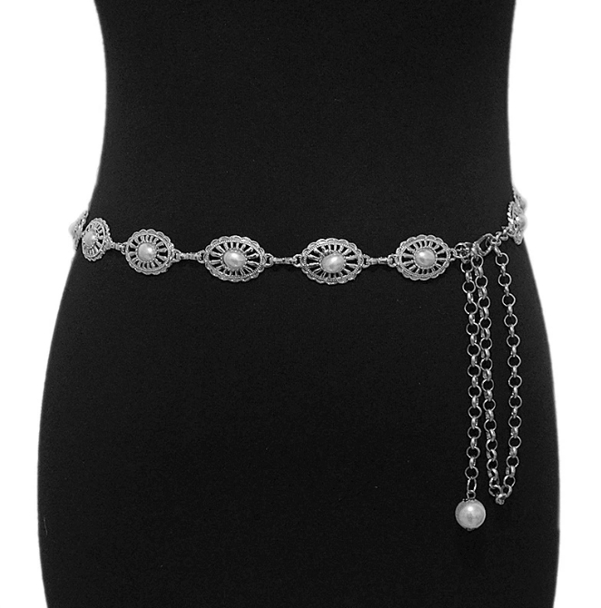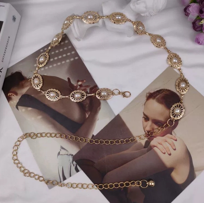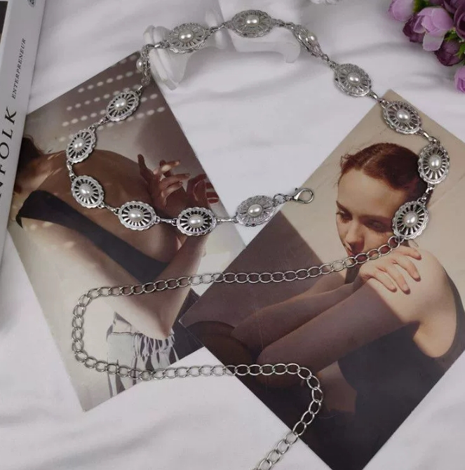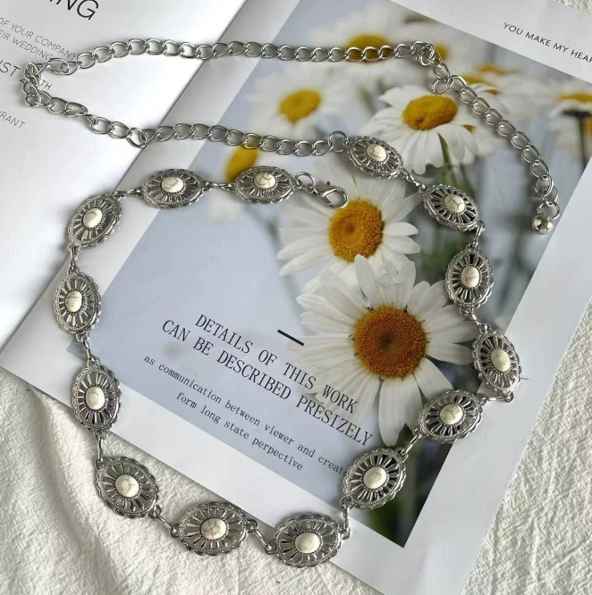 Bohemian Retro Metal Chain Belt Turquoise Carved Waist Chain Turkish Blue Acrylic Thin Waist Chain