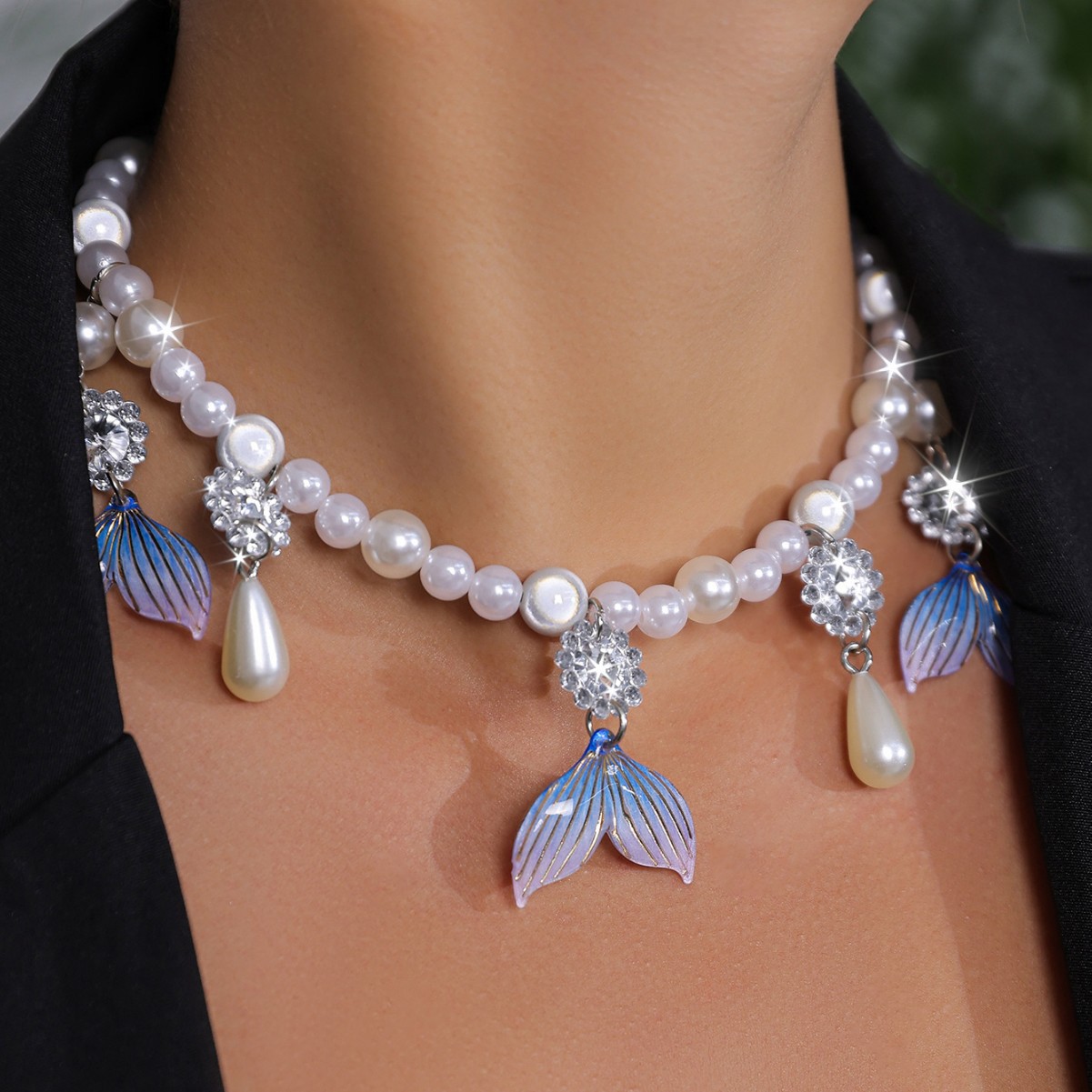 Popular Niche Style Hot Selling Personalized Fashion Trendy Rhinestone Pearl Necklace