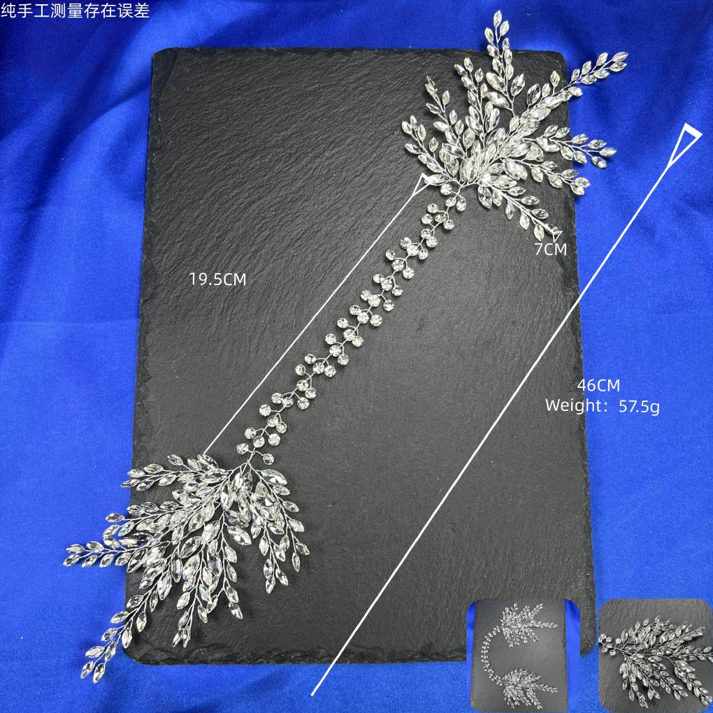 Fully rhinestone and crystal leaf headband, long and luxurious bridal headpiece, perfect for wedding banquet dresses.