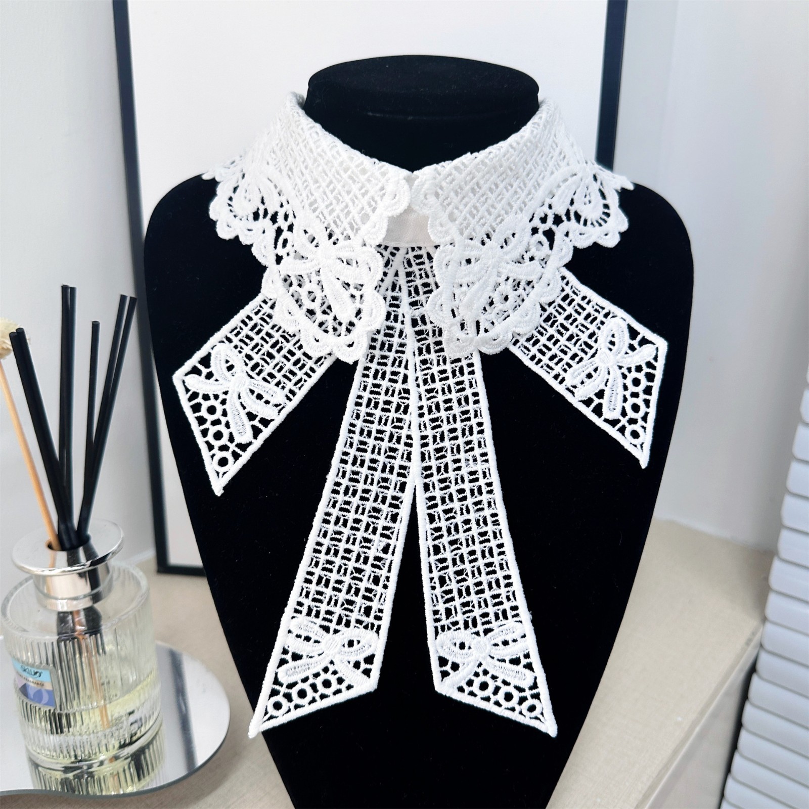 Hot selling lace hollowed out shawl with fake collar, bow decoration collar, dress and shirt matching
