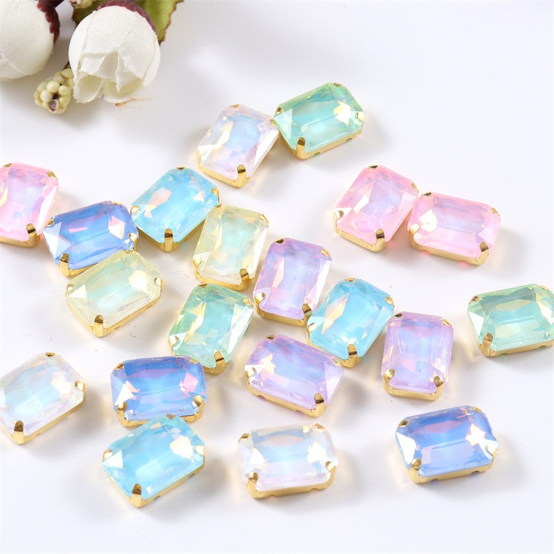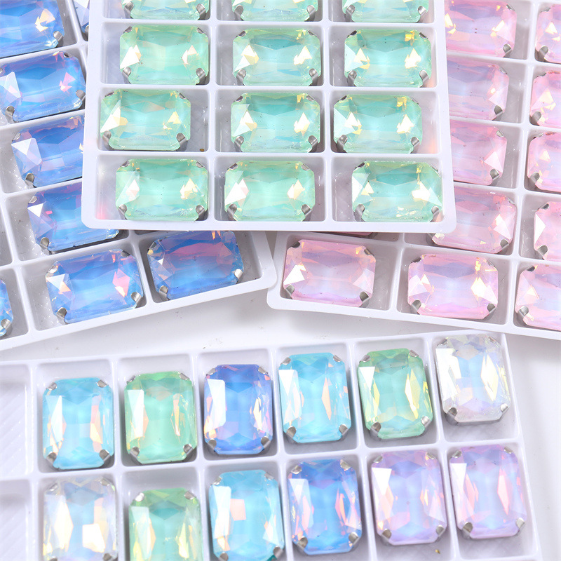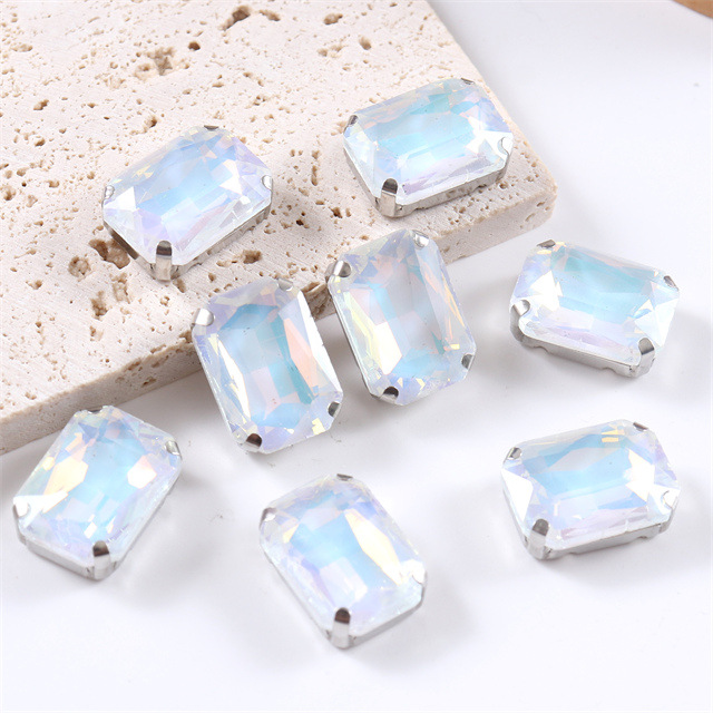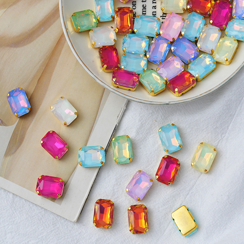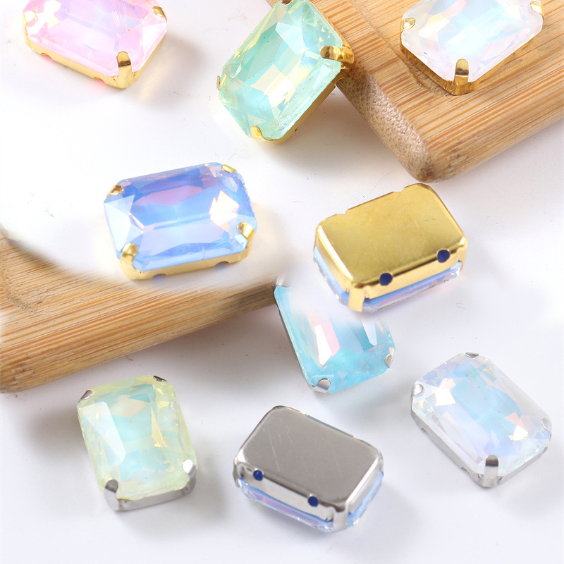 Glass rectangular claw diamond flat bottom crystal hand sewn diamond DIY jewelry shoes and bags accessories clothing accessories