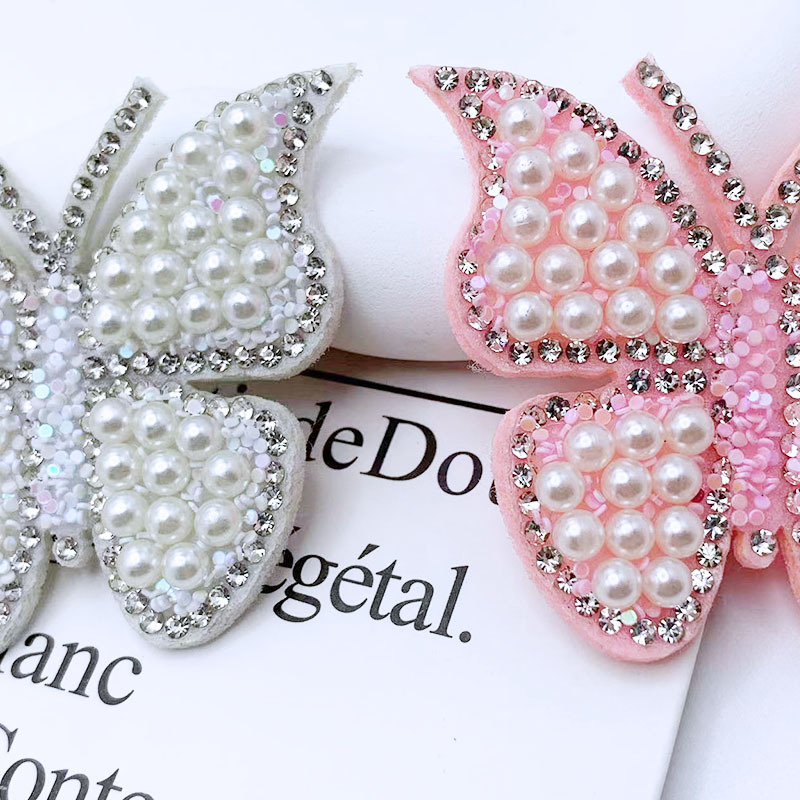 Pearl rhinestone non-woven fabric colorful butterfly cloth patch hot diamond hot pattern DIY clothing luggage accessories