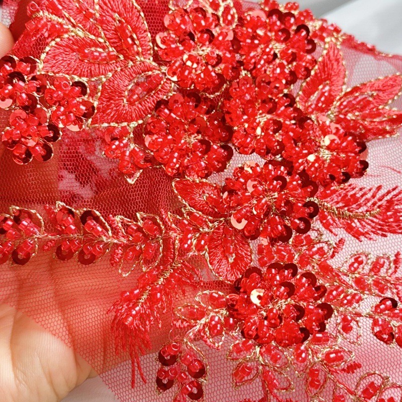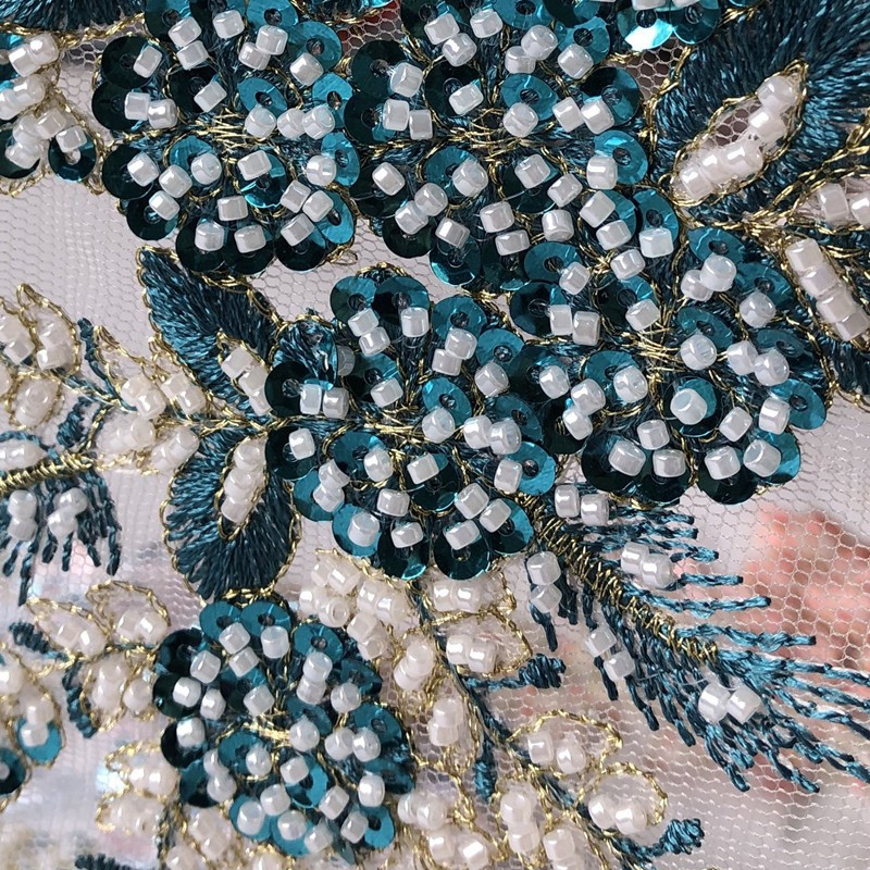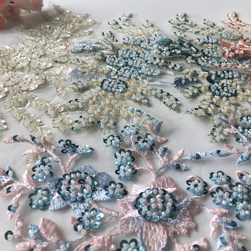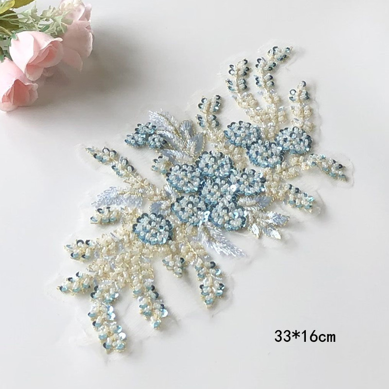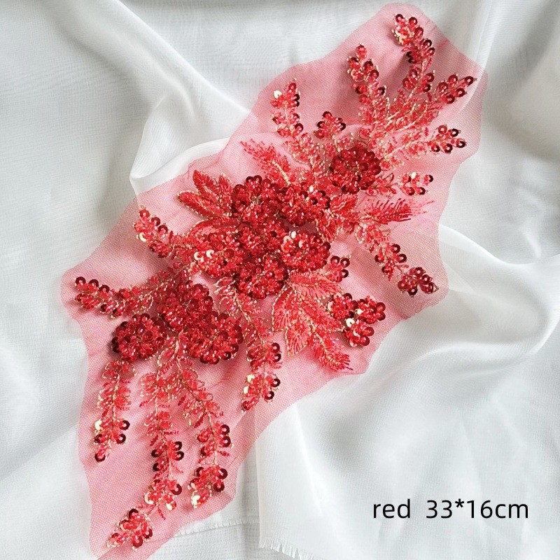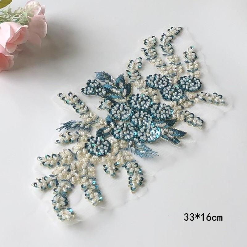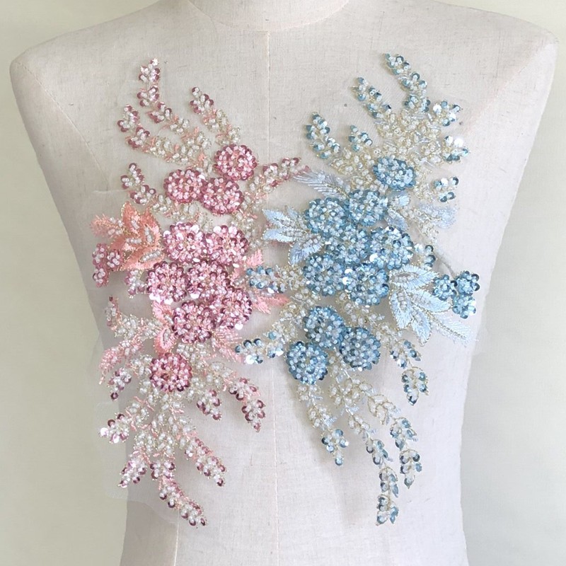 3D Beaded Flower Mesh Embroidery Applique Lace Patch for Wedding Dress Hanfu DIY Decor
