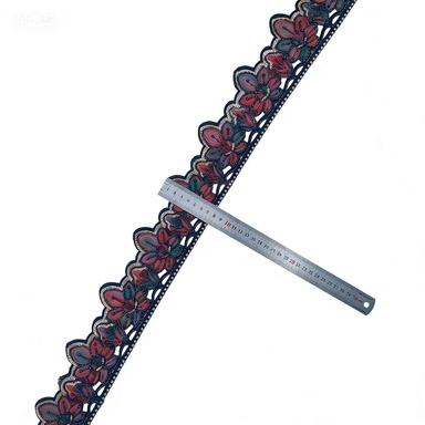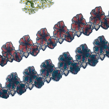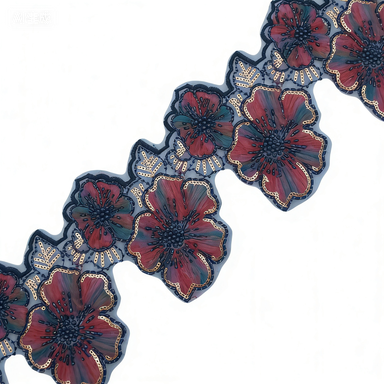 140mm Dark Green & Crimson Beaded Lace, 5-Petal Tape Embroidery Sequin Strip, Embroidered Apparel Accessory for Middle East Abaya